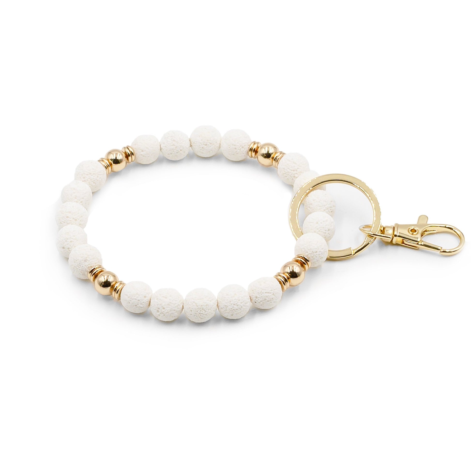 Gold And White Bangle White Hypoallergenic Nickel Free Keychain Accessory. Custom Lava Rock Raw Natural Stone Accents And Designed With Love In Texas. Size 3 Inch Diameter With Custom Sizing Available On Select Pieces.
