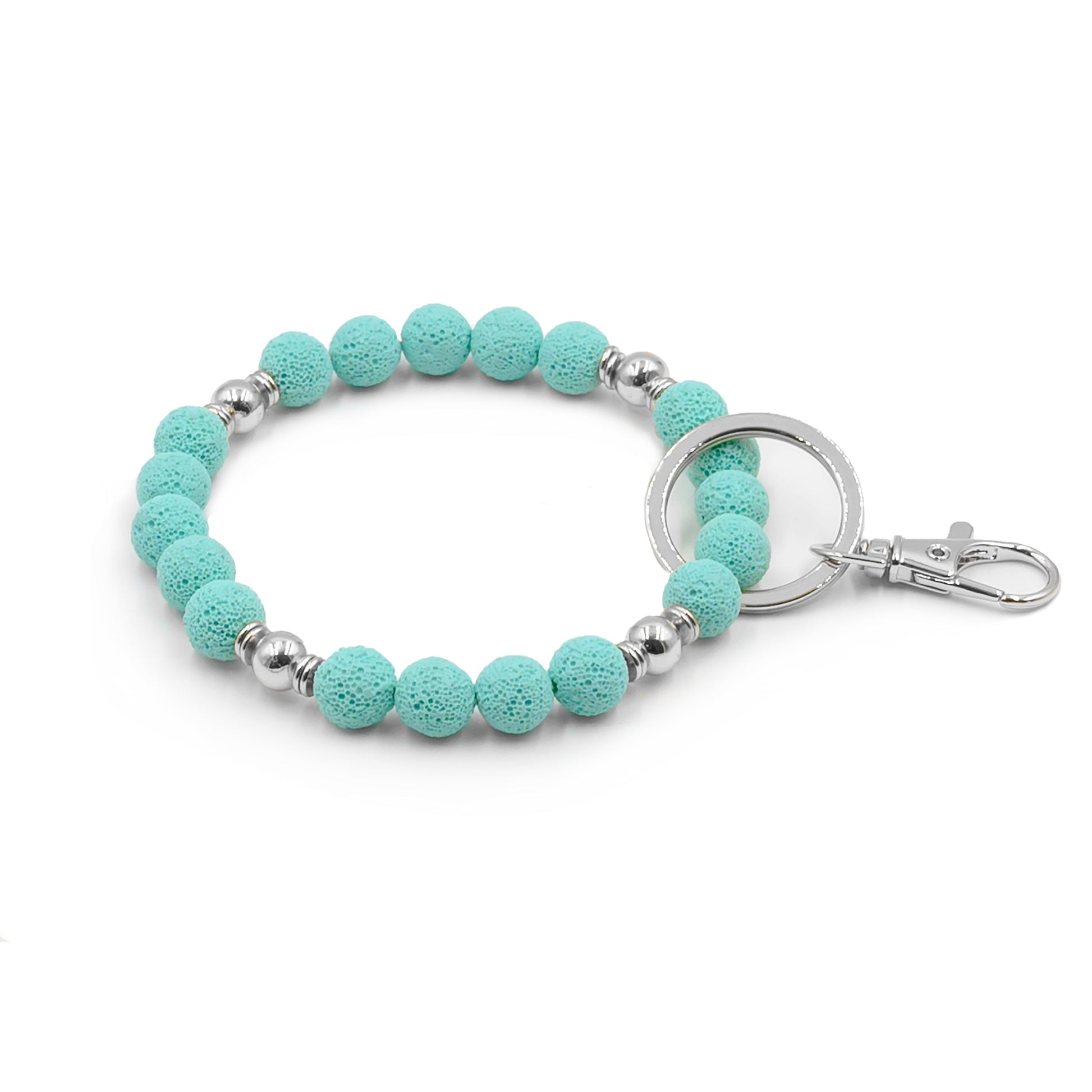 Silver And Light Blue Bangle Hypoallergenic Nickel Free Keychain Accessory. Custom Lava Rock Raw Natural Stone Accents And Designed With Love In Texas. Size 3 Inch Diameter With Custom Sizing Available On Select Pieces.