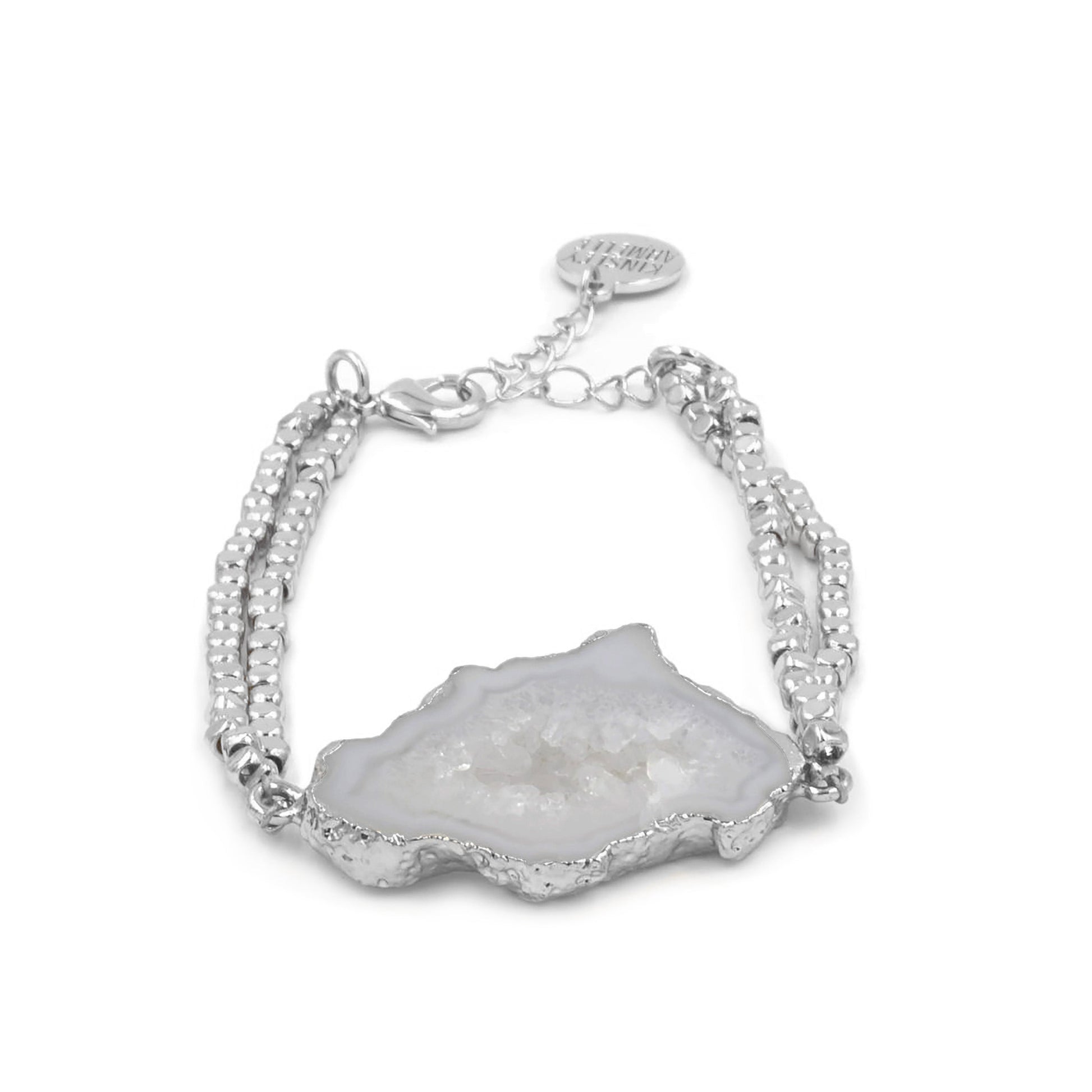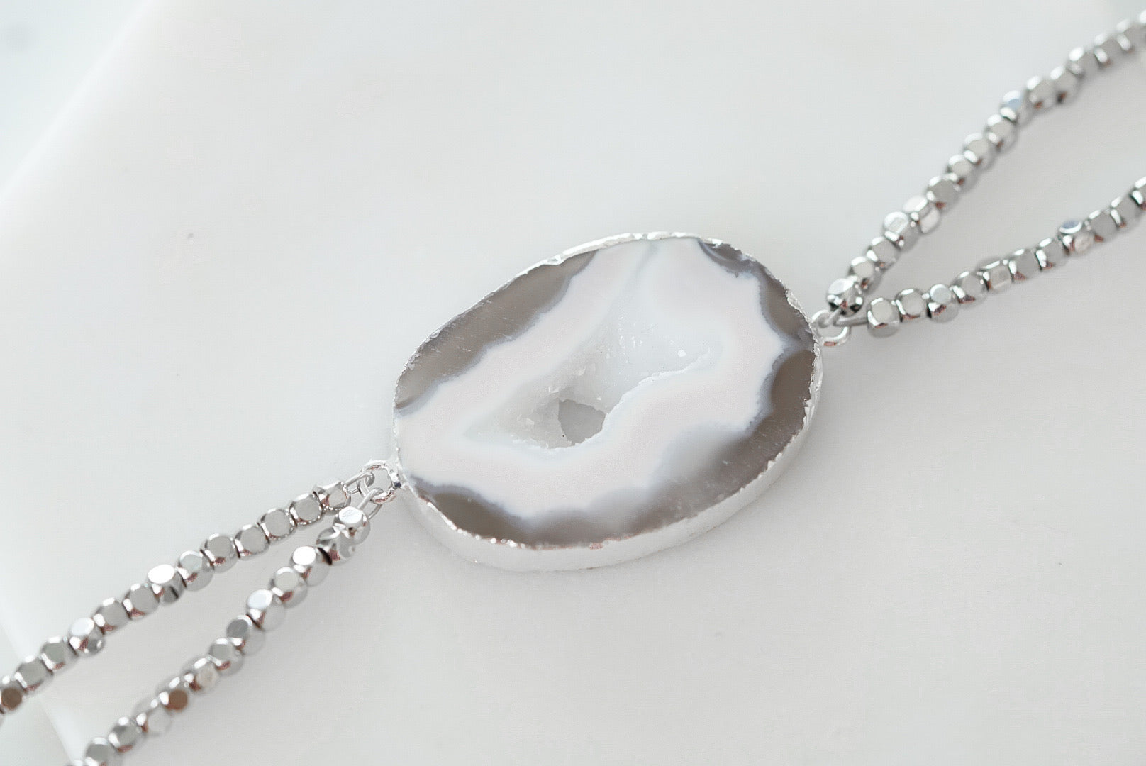 Silver And White Chain Clasp Natural Stone Hypoallergenic Nickel Free Adjustable Bracelet. Custom Agate Slices Raw Natural Stone Accents And Designed With Love In Texas. Size 6.75 - 8.75 Inch Circumference With Custom Sizing Available On Select Pieces.