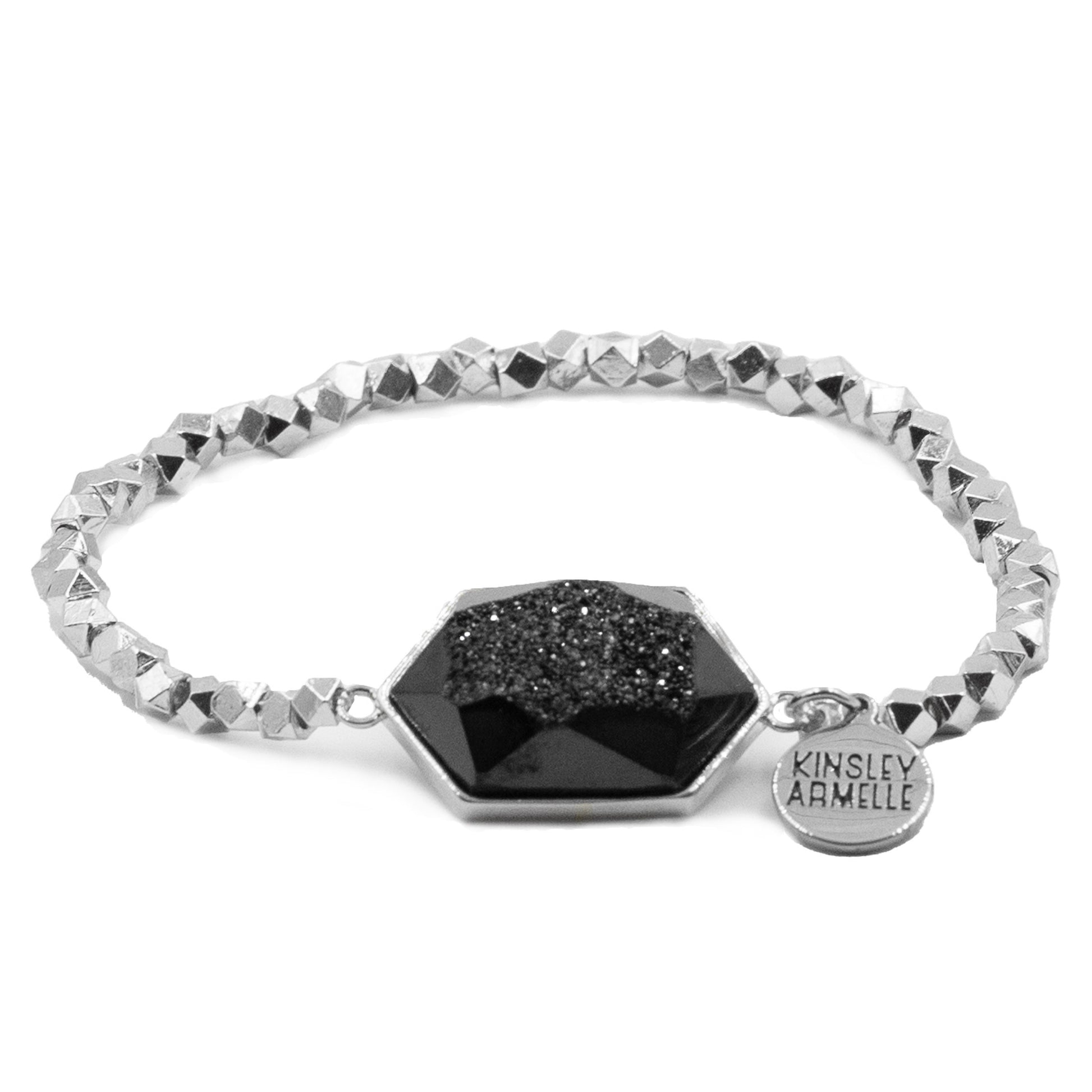 Silver And Black Druzy Geometric Natural Stone Crystal Gemstone Shimmering Sparkling Beaded Stretch Bracelet. Custom Druzy Raw Natural Quartz Stone Accents And Designed With Love In Texas. Size Small, Medium, Large, and Extra Large Ranging From 6.25 - 7.25 Inch Circumference With Custom Sizing Available On Select Pieces.