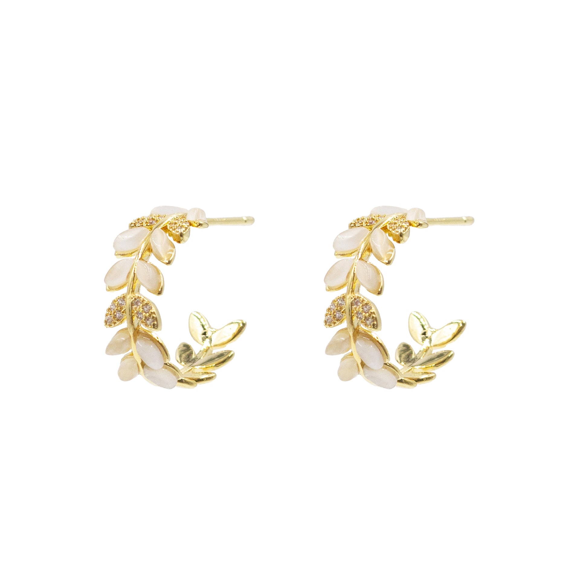 Gold And White Cream Diamond Shimmering Sparkling Featherweight Hoop Earrings. Custom Opal Raw Natural Stone Accents And Designed With Love In Texas. Size 0.75 Inch Diameter With Custom Sizing Available On Select Pieces.