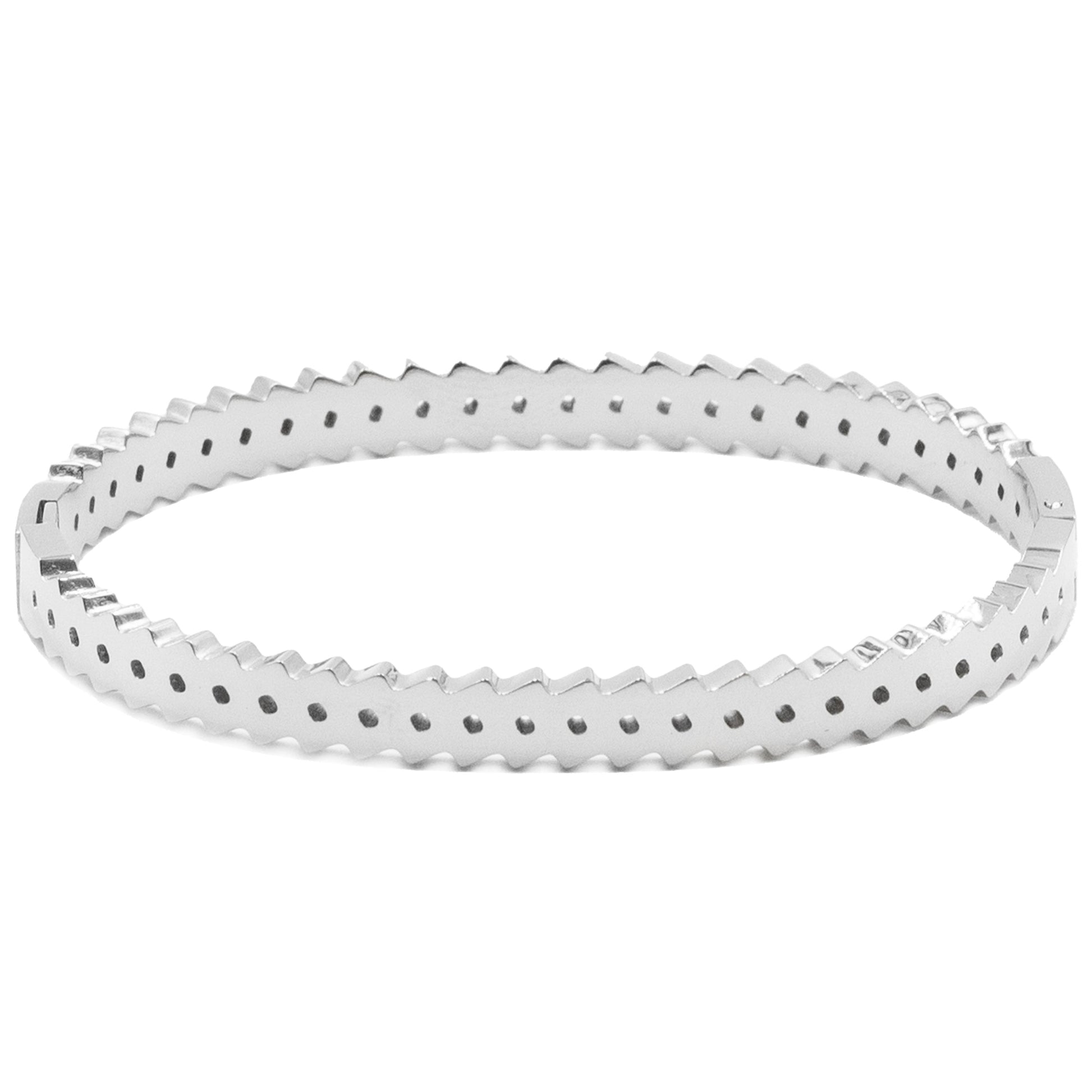 Silver And White Hinged Hypoallergenic Nickel Free Statement Bangle Cuff Bracelet. Custom Silver Ion Plated Stainless Steel Geometric Shapes Accents And Designed With Love In Texas. Size 6.25 - 7.25 Inches Circumference With Custom Sizing Available On Select Pieces.