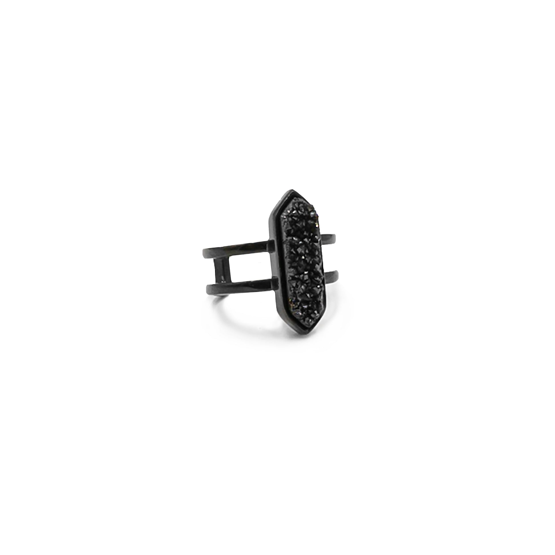 All Black Hypoallergenic Nickel Free Cuff Ring. Custom Druzy Raw Natural Quartz Stone Accents And Designed With Love In Texas. Size 5 - 10 With Custom Sizing Available On Select Pieces.