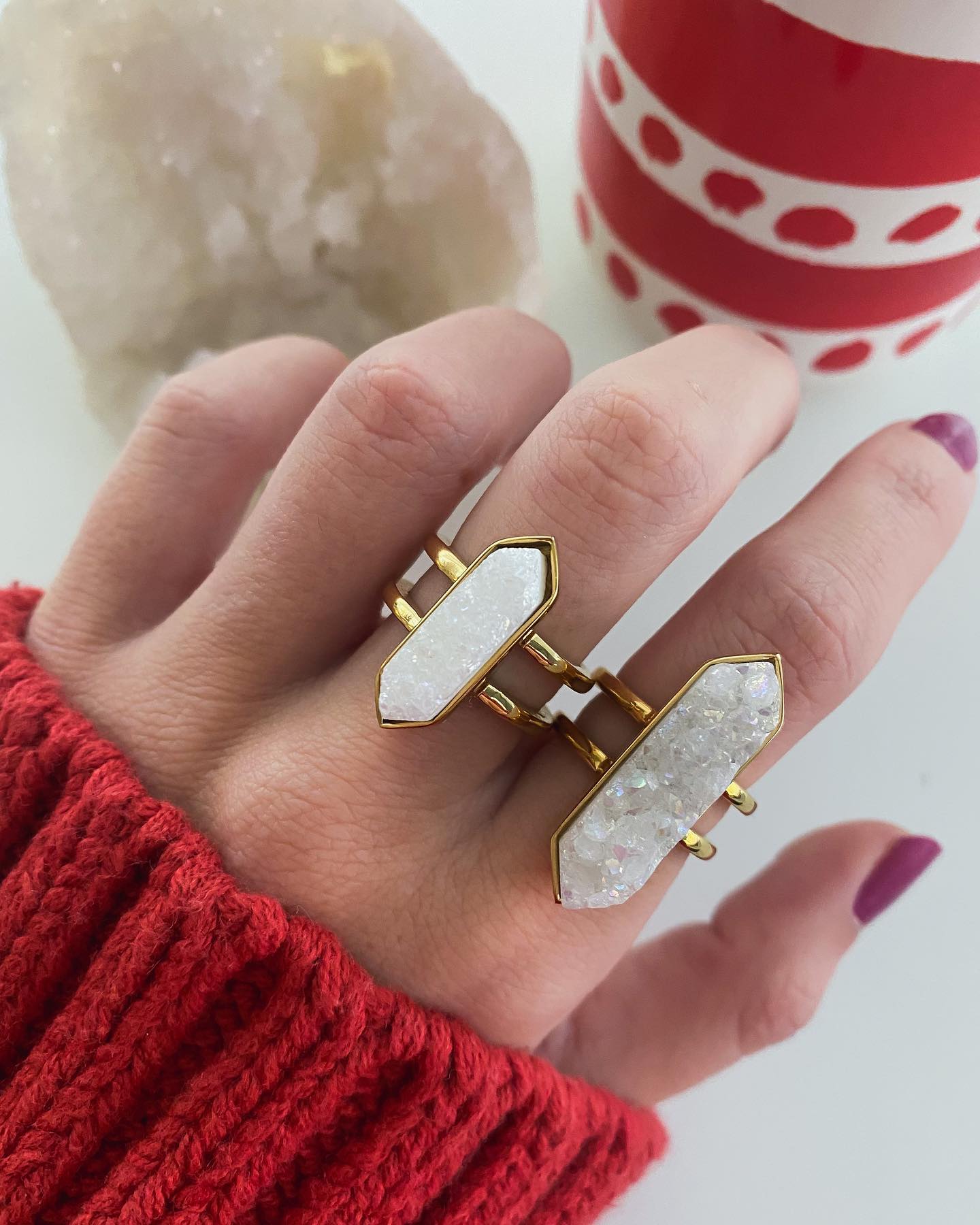 Gold And White Hypoallergenic Nickel Free Ring Stack Set. Custom Druzy Raw Natural Quartz Stone Accents And Designed With Love In Texas. Size 5 - 10 With Custom Sizing Available On Select Pieces.