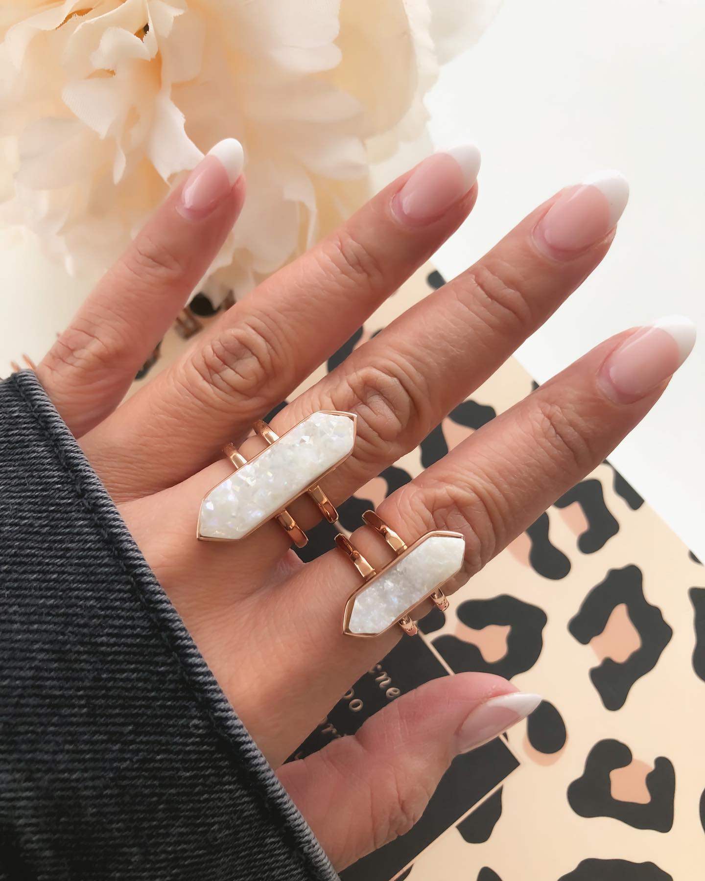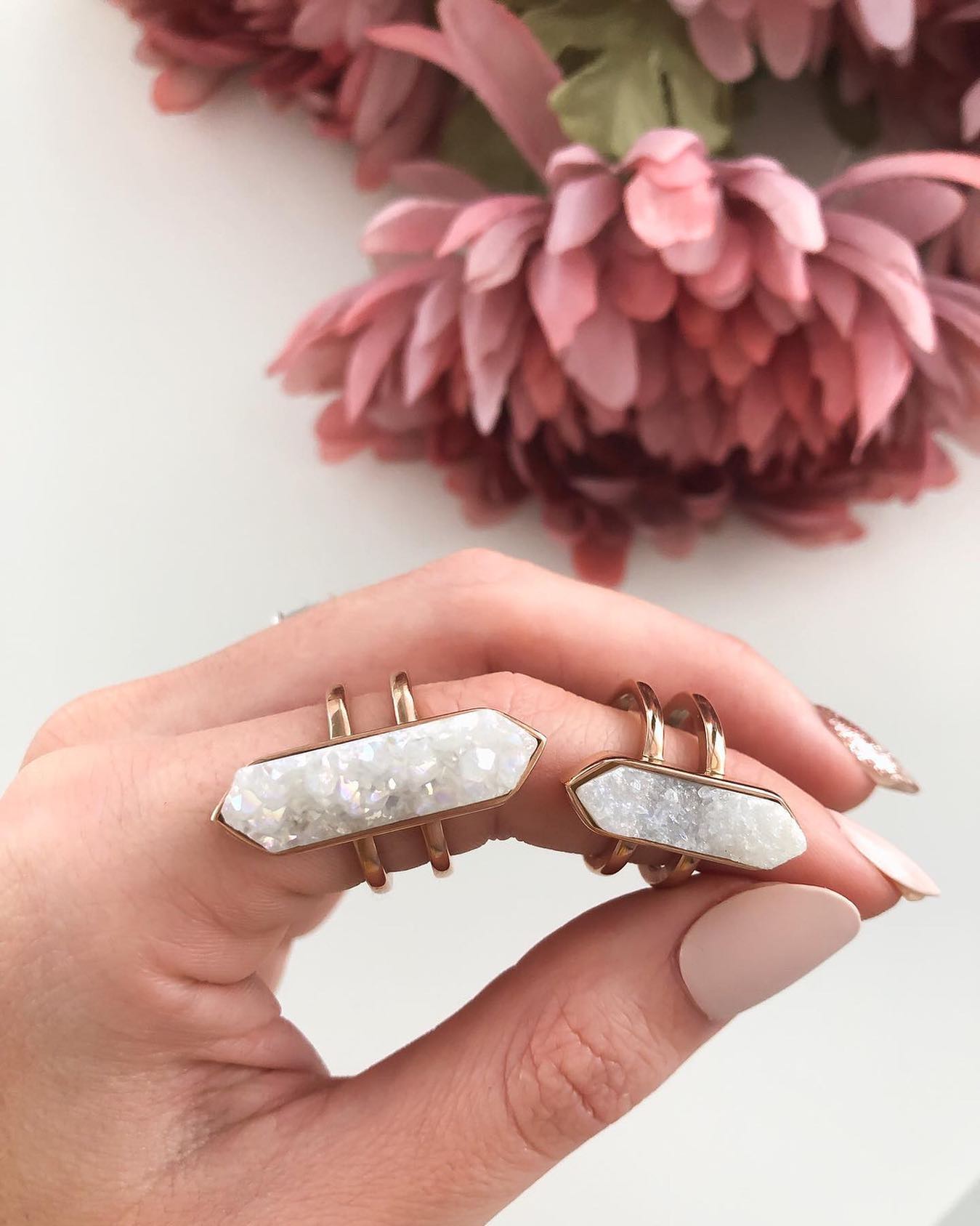Rose Gold And White Hypoallergenic Nickel Free Ring Stack Set. Custom Druzy Raw Natural Quartz Stone Accents And Designed With Love In Texas. Size 5 - 10 With Custom Sizing Available On Select Pieces.
