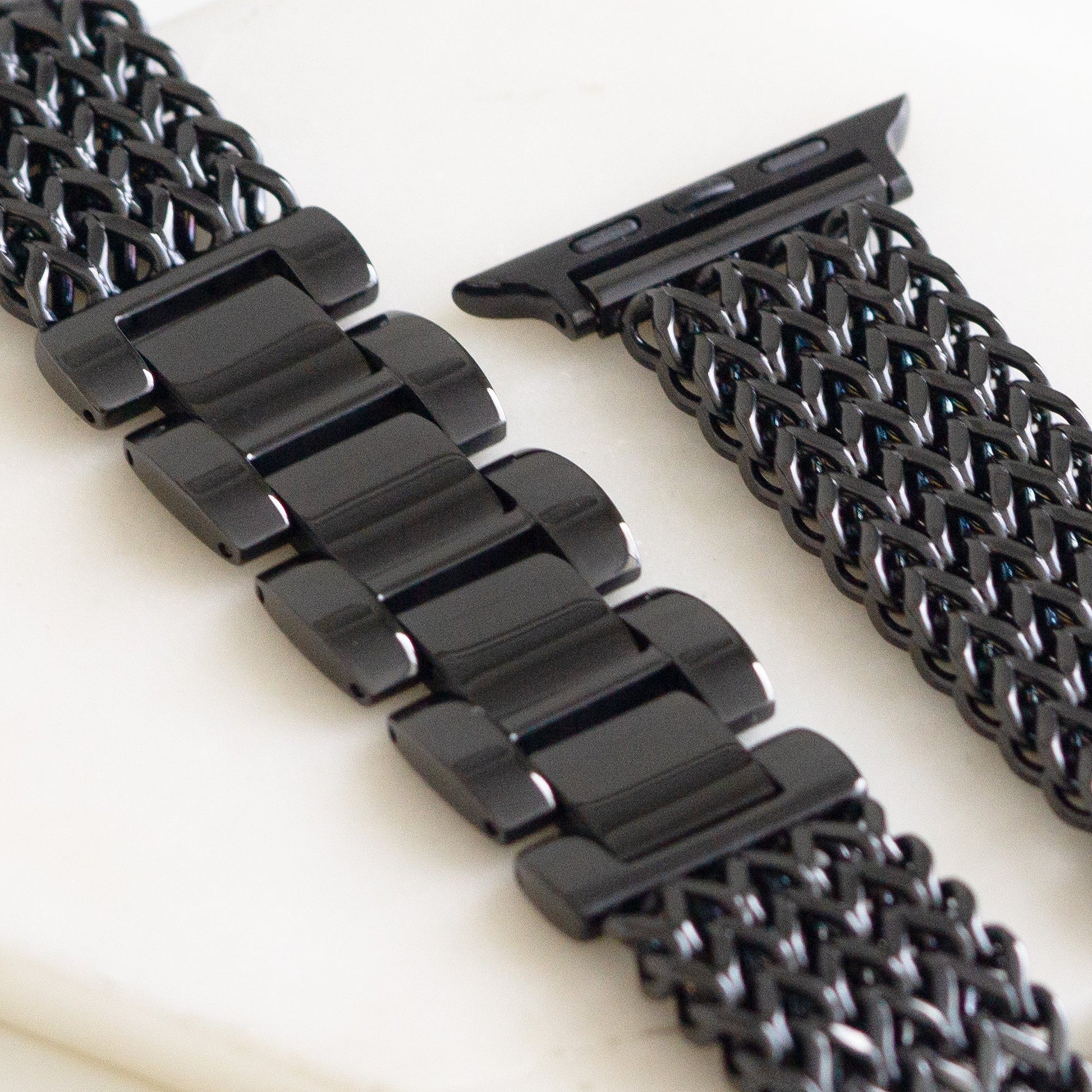 All Black Hypoallergenic Nickel Free Statement Adjustable Watch. Custom Chain Accents And Designed With Love In Texas. Size 6.25 - 7.25 Inches Circumference With Custom Sizing Available On Select Pieces.
