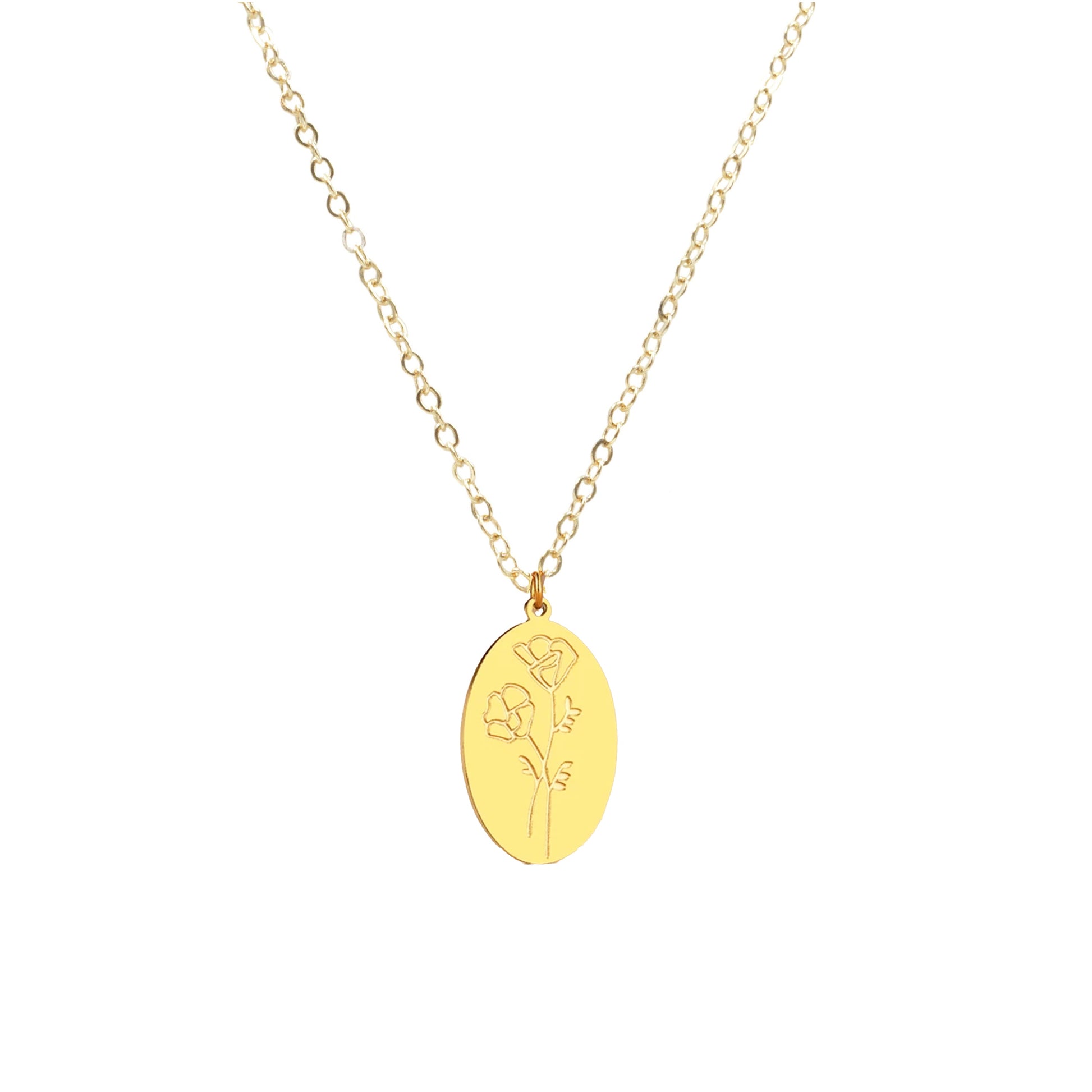 Birth Flower Collection - Poppy Oval Necklace (August)