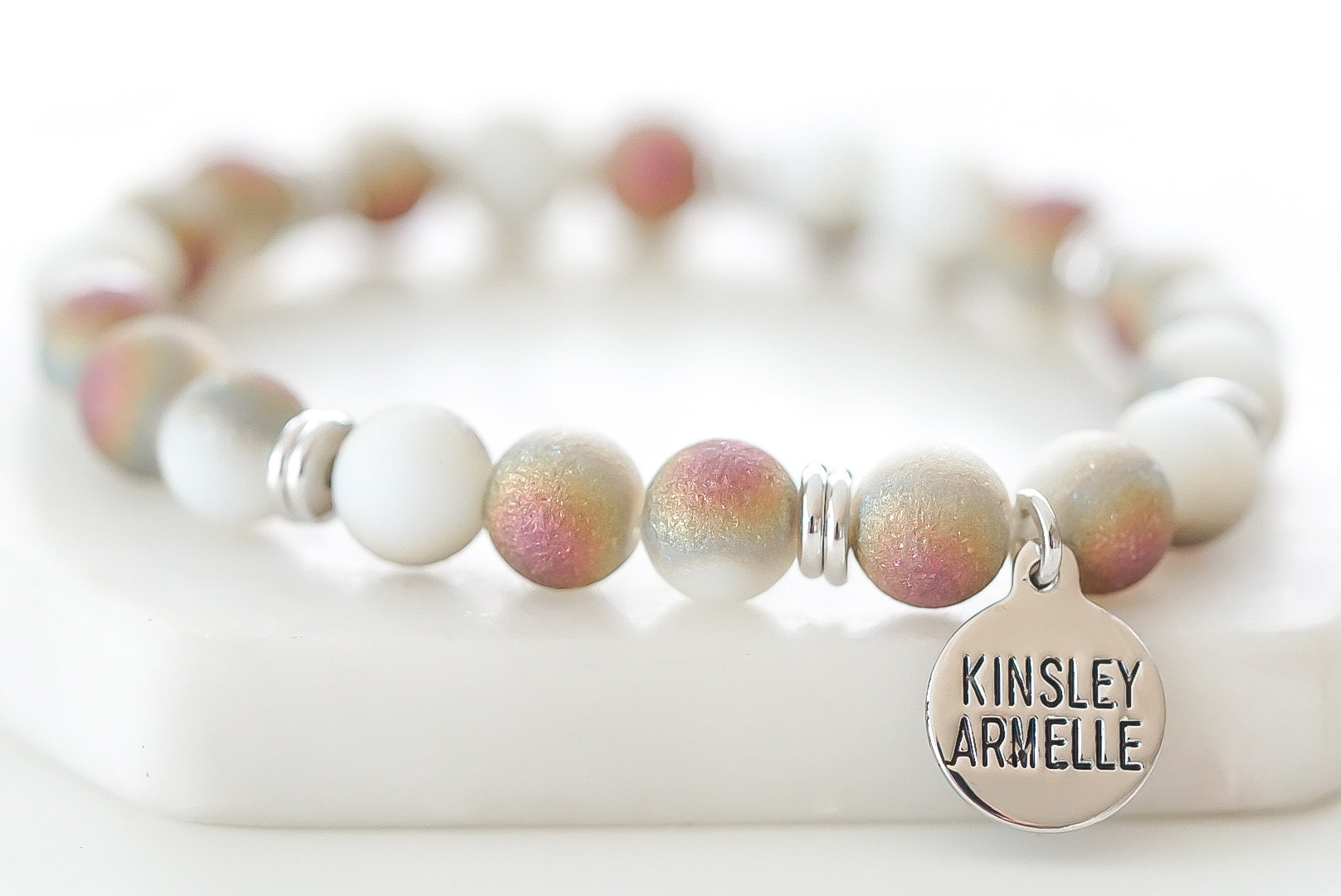 Silver And Brown Matte Hypoallergenic Nickel Free Beaded Stretch Bracelet. Custom Decorative Accent Beads Accents And Designed With Love In Texas. Size Small, Medium, Large, and Extra Large Ranging From 6.25 - 7.25 Inch Circumference With Custom Sizing Available On Select Pieces.