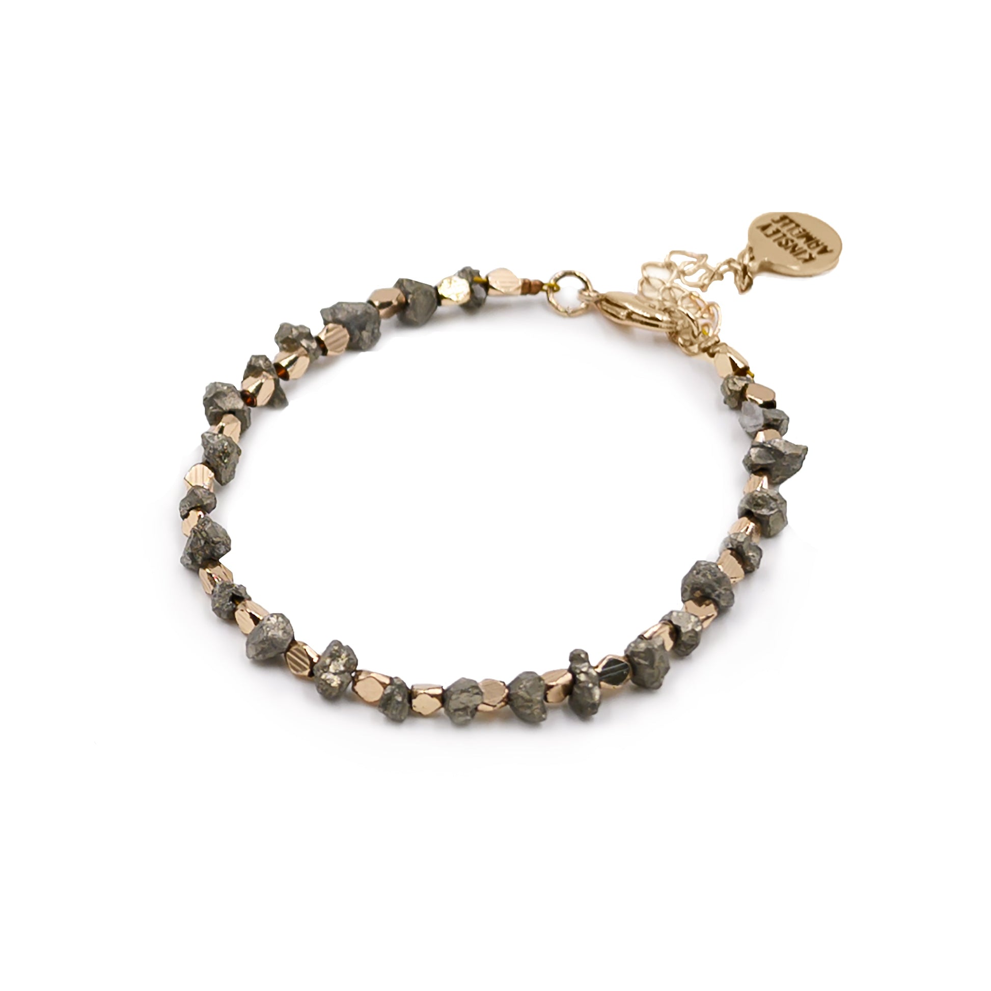 Gold And Green Chip Dainty Jagged Raw Thin Hypoallergenic Nickel Free Adjustable Bracelet. Custom Decorative Accent Beads Accents And Designed With Love In Texas. Size 6.25 - 8.5 Inch Circumference With Custom Sizing Available On Select Pieces.