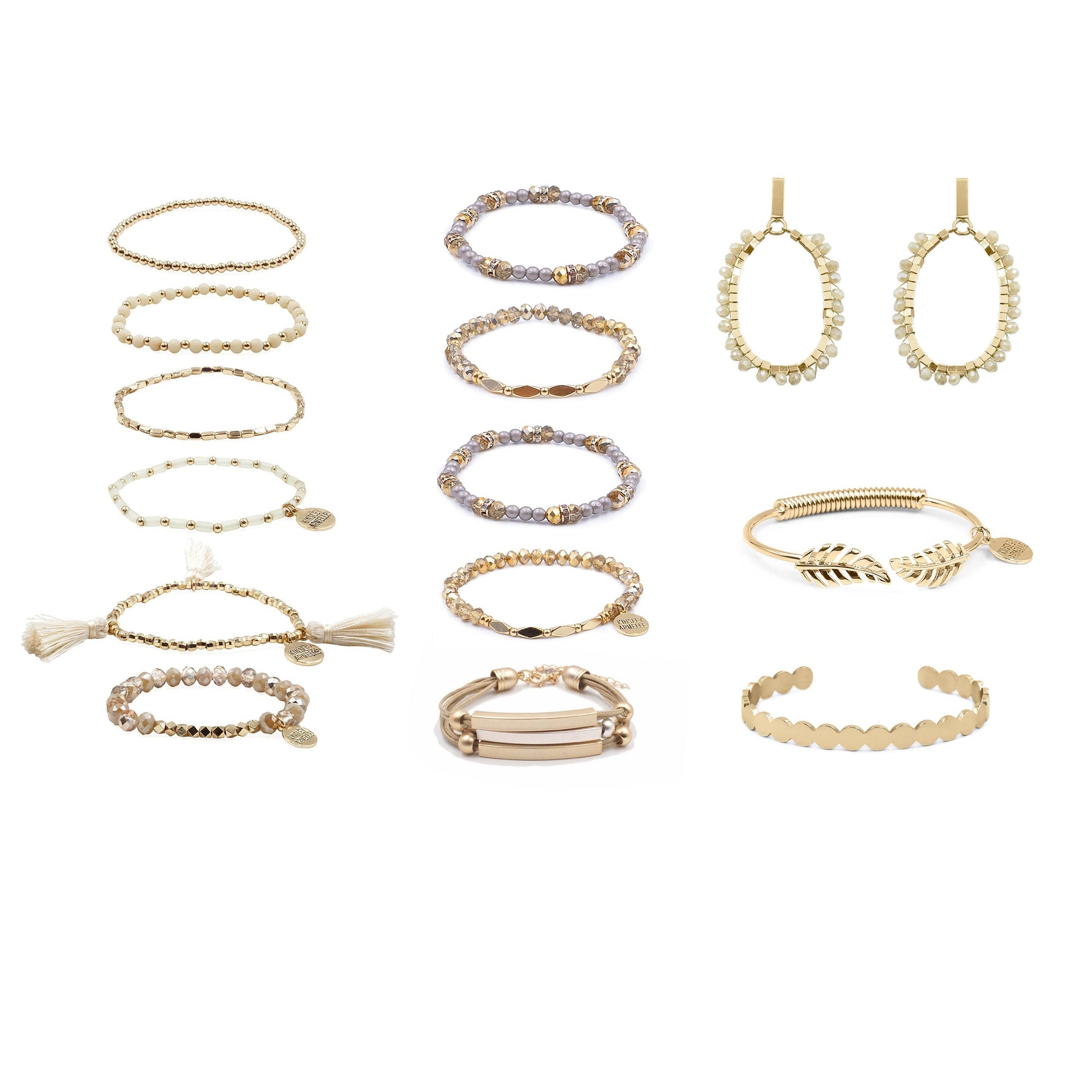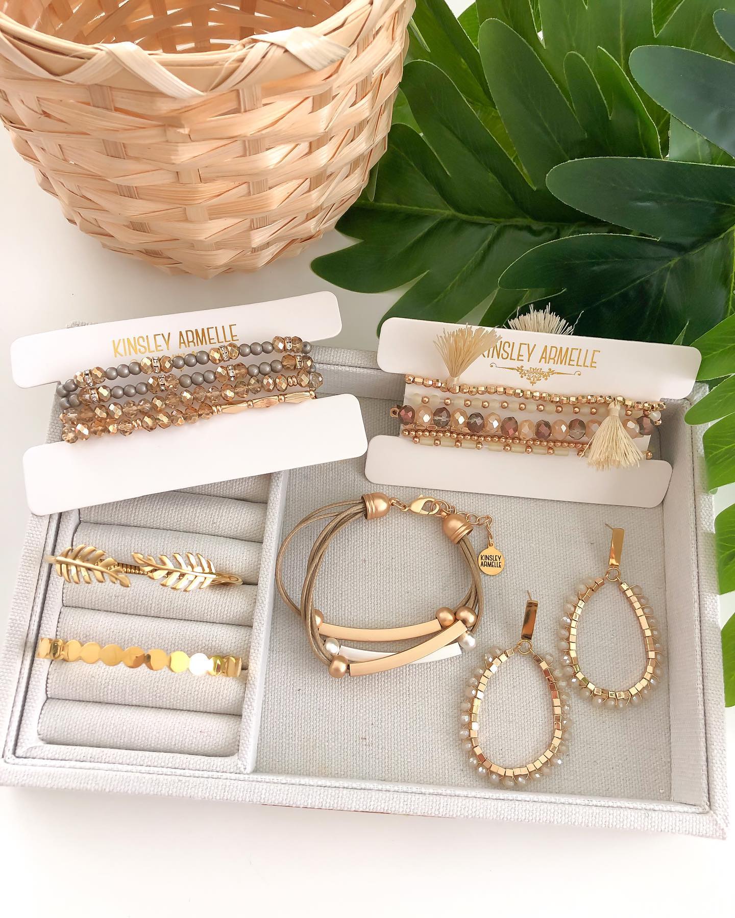 Gold And Brown Adjustable Beads Cuff Earrings Faceted Leaf Feather Multistrand Stackable Tassel Hypoallergenic Nickel Free Jewelry & Bracelet Stack Set. Custom Decorative Accent Beads Accents And Designed With Love In Texas. Size Small, Medium, Large, and Extra Large Ranging From Bracelets: 6.25 - 7.25 Inch Circumference | 2.5 Inches Length x 1.5 Inches Width With Custom Sizing Available On Select Pieces.