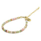 Gold And Green Adjustable Clasp Boho Colorful Hypoallergenic Nickel Free Dainty Adjustable Bracelet. Custom Glass Decorative Accent Beads Accents And Designed With Love In Texas. Size 6.25 - 8.5 Inch Circumference With Custom Sizing Available On Select Pieces.
