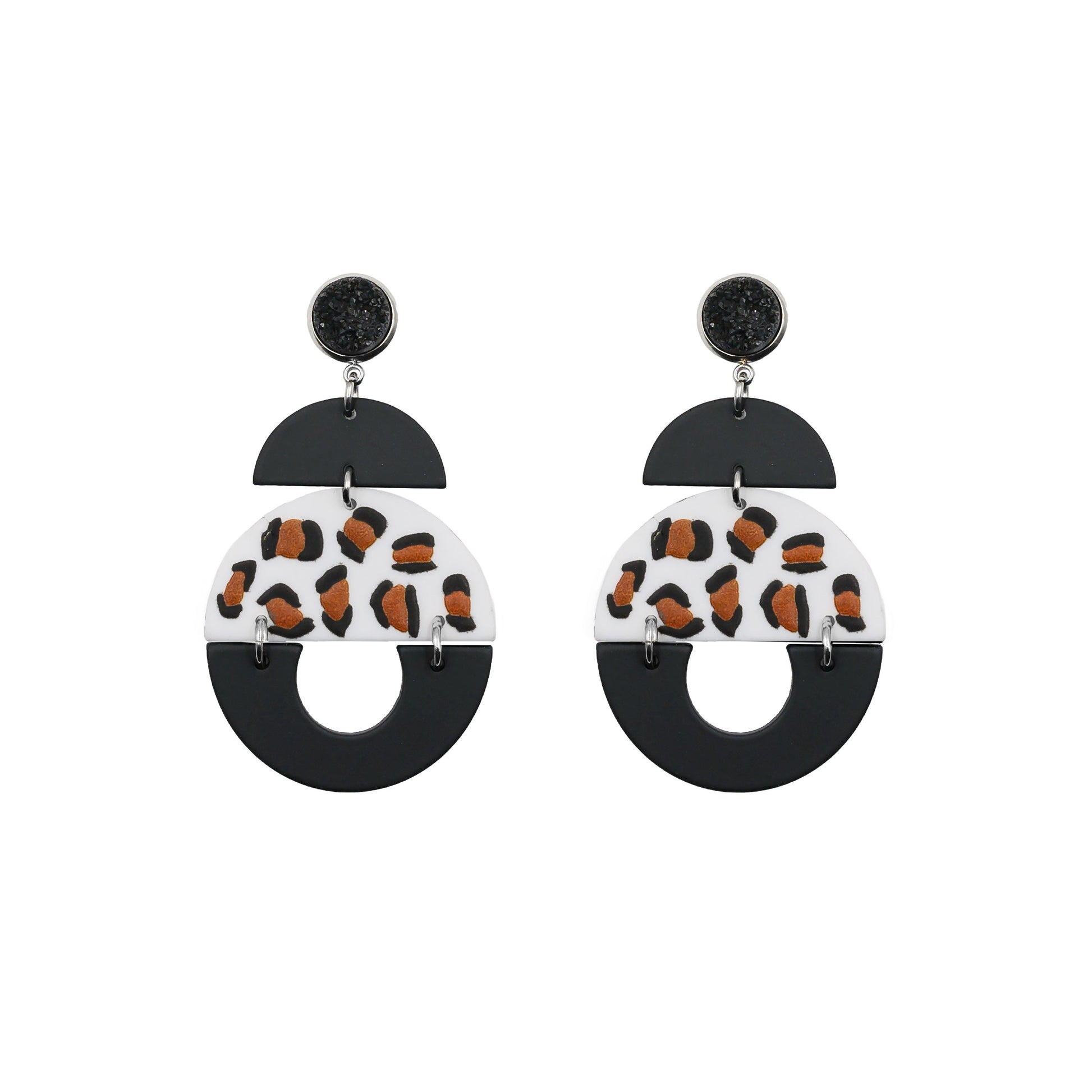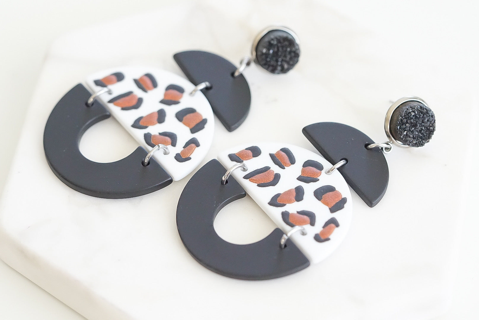 Silver And Brown Cheetah Clay Druzy Leopard Natural Stone Raw Stud Tiered Lightweight Hypoallergenic Nickel Free Statement Drop Earrings. Custom Druzy Raw Natural Quartz Stone Accents And Designed With Love In Texas. Size 2.75 Inch Length x 1.5 Inch Width With Custom Sizing Available On Select Pieces.