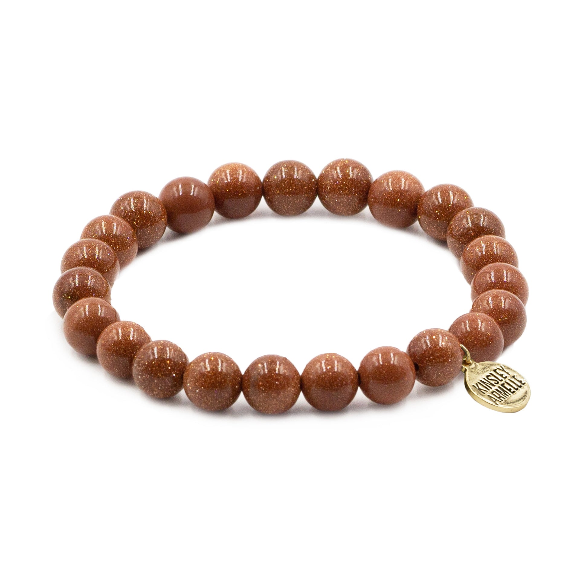 White And Brown Glossy Natural Stone Shimmering Sparkling Hypoallergenic Nickel Free Beaded Stretch Bracelet. Custom Silver Ion Plated Stainless Steel Charm Accents And Designed With Love In Texas. Size Small, Medium, Large, and Extra Large Ranging From 6.25 - 7.25 Inch Circumference With Custom Sizing Available On Select Pieces.