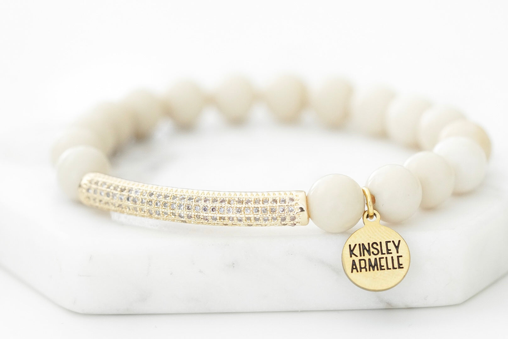 Gold And Brown Natural Stone Pave Hypoallergenic Nickel Free Beaded Stretch Bracelet. Custom Zircon Gemstones Pave Rhinestone Bar Accents And Designed With Love In Texas. Size Small, Medium, Large, and Extra Large Ranging From 6.25 - 7.25 Inch Circumference With Custom Sizing Available On Select Pieces.