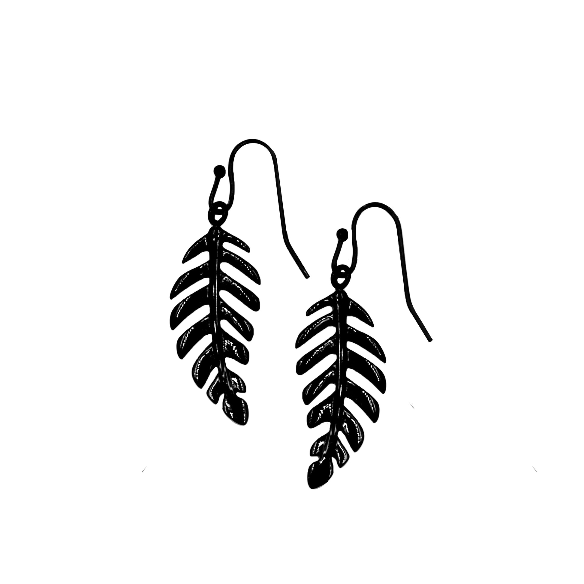 Goddess Collection - Black Laurel Leaf Drop Earrings