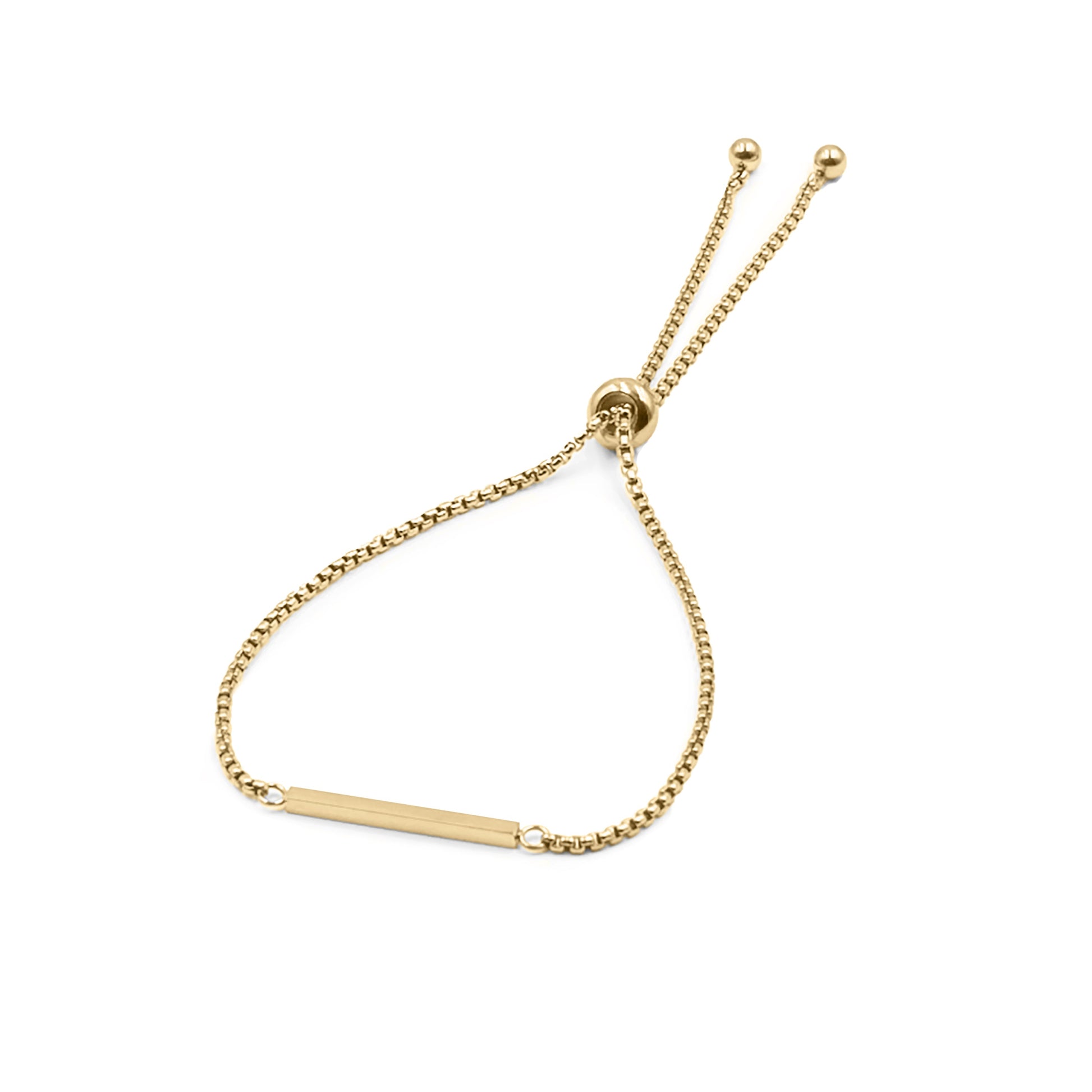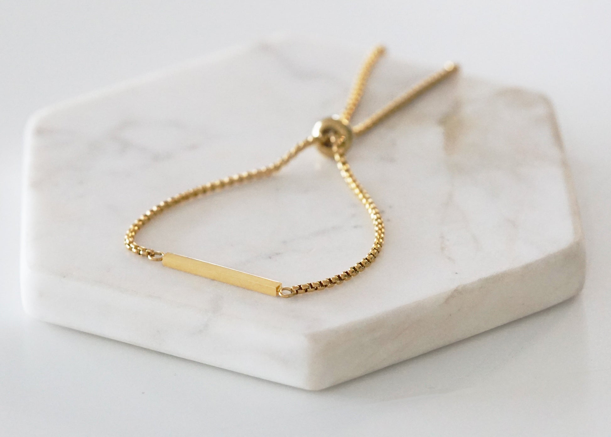Gold And White Bolo Sliding Clasp Hypoallergenic Nickel Free Dainty Adjustable Bracelet. Custom Smooth Bar Accents And Designed With Love In Texas. Size 6 - 8.5 Inch Circumference With Custom Sizing Available On Select Pieces.