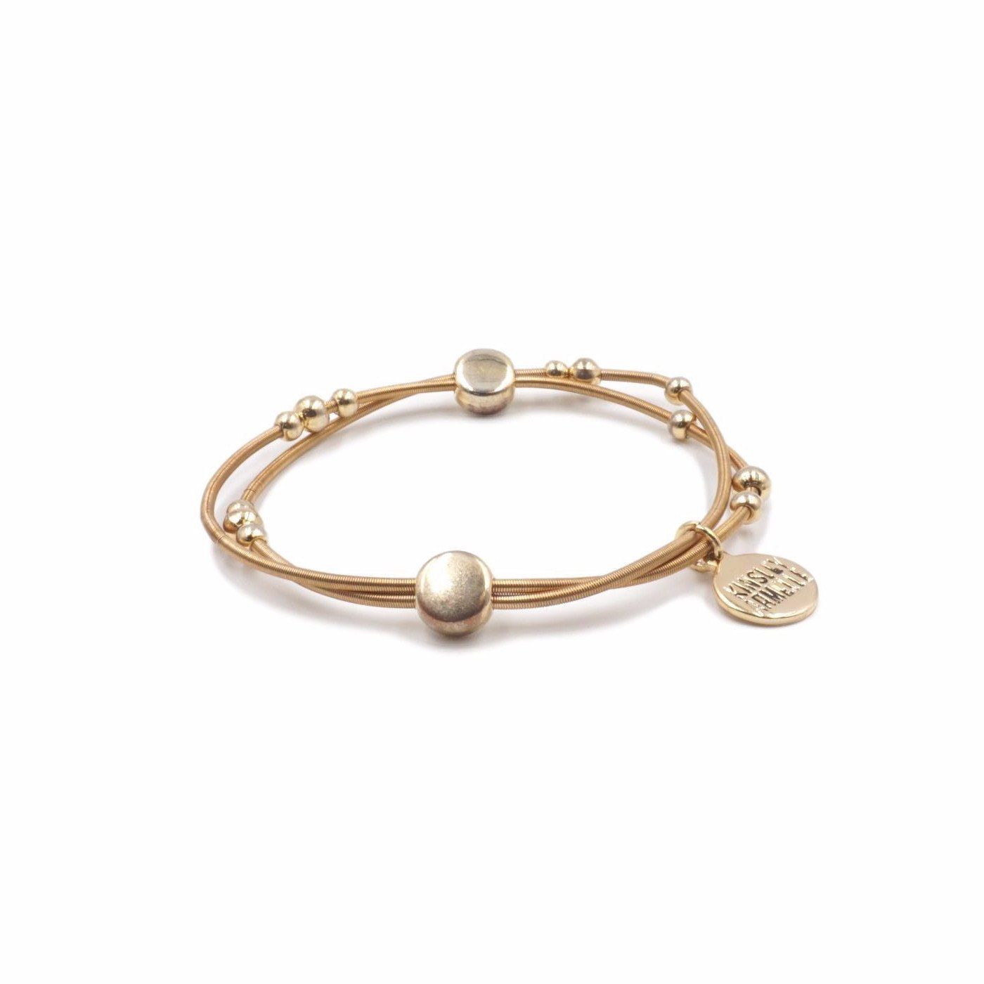 Gold And White Disc Hypoallergenic Nickel Free Dainty Steel Bracelet. Custom Decorative Accent Beads Accents And Designed With Love In Texas. Size Small, Medium, Large, and Extra Large Ranging From 6.25 - 7.25 Inch Circumference With Custom Sizing Available On Select Pieces.