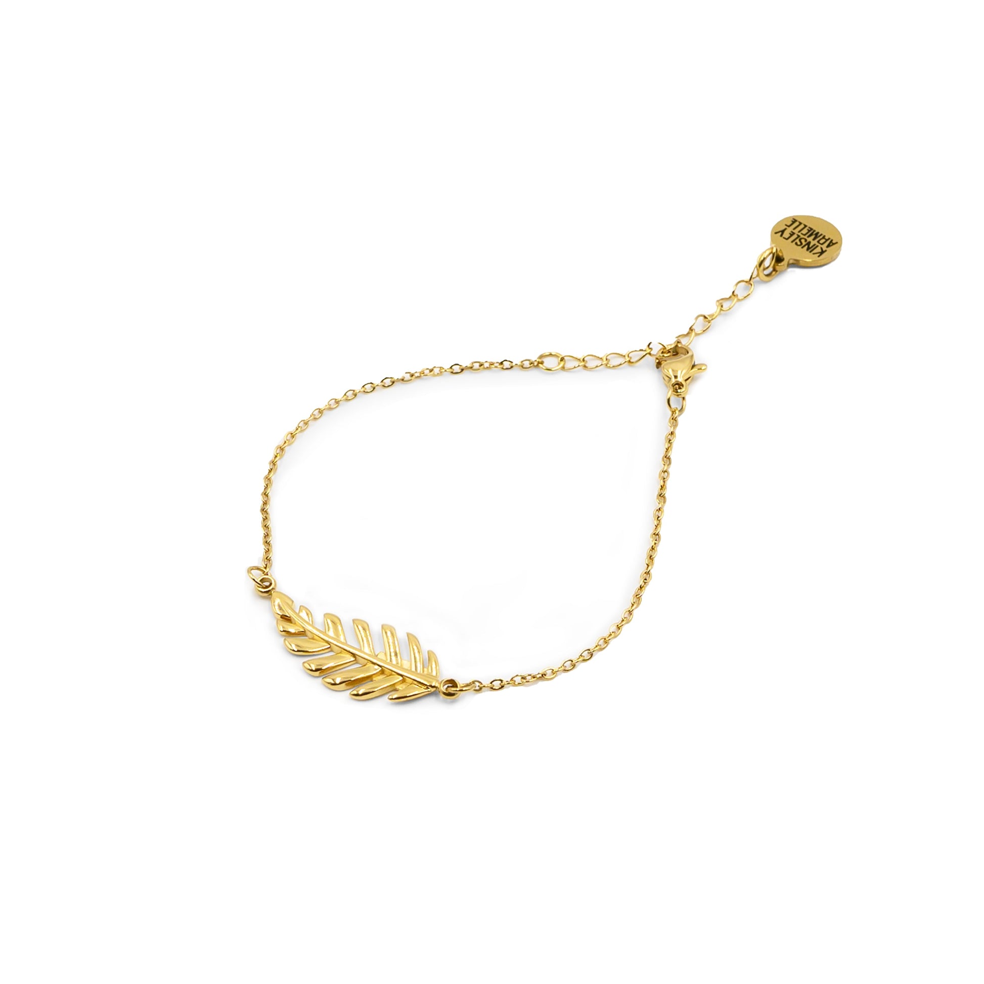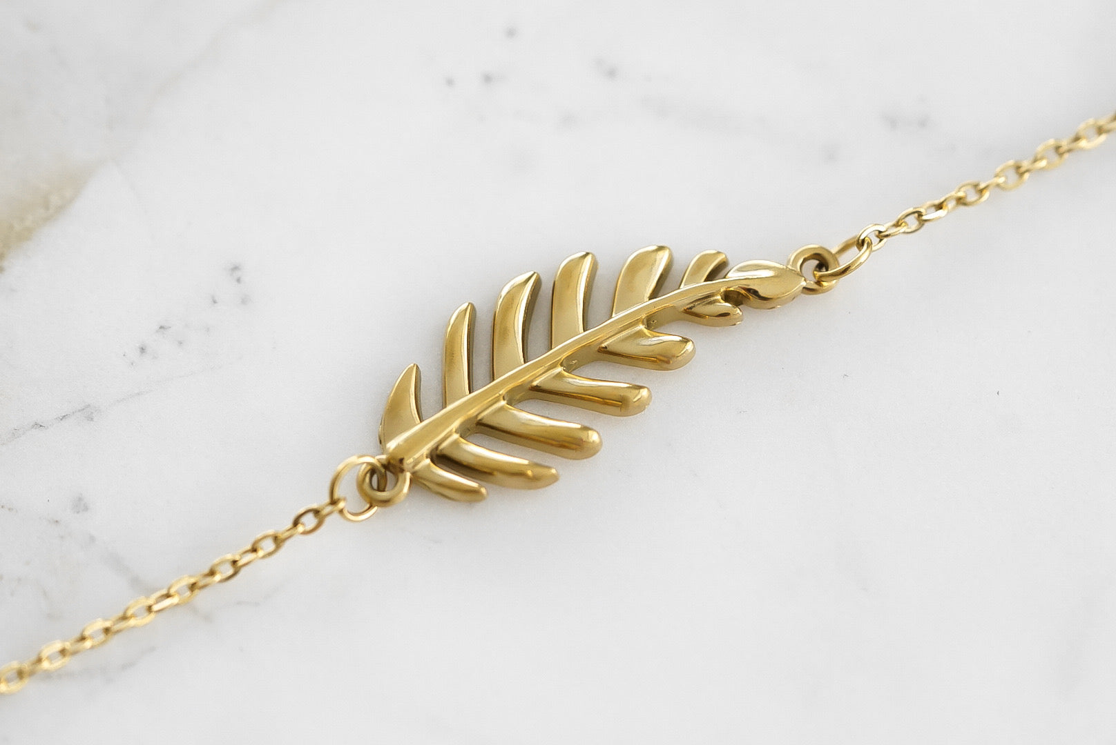 Gold And White Clasp Leaf Feather Hypoallergenic Nickel Free Dainty Adjustable Bracelet. Custom Geometric Shapes Accents And Designed With Love In Texas. Size 7.0 - 8.75 Inch Circumference With Custom Sizing Available On Select Pieces.
