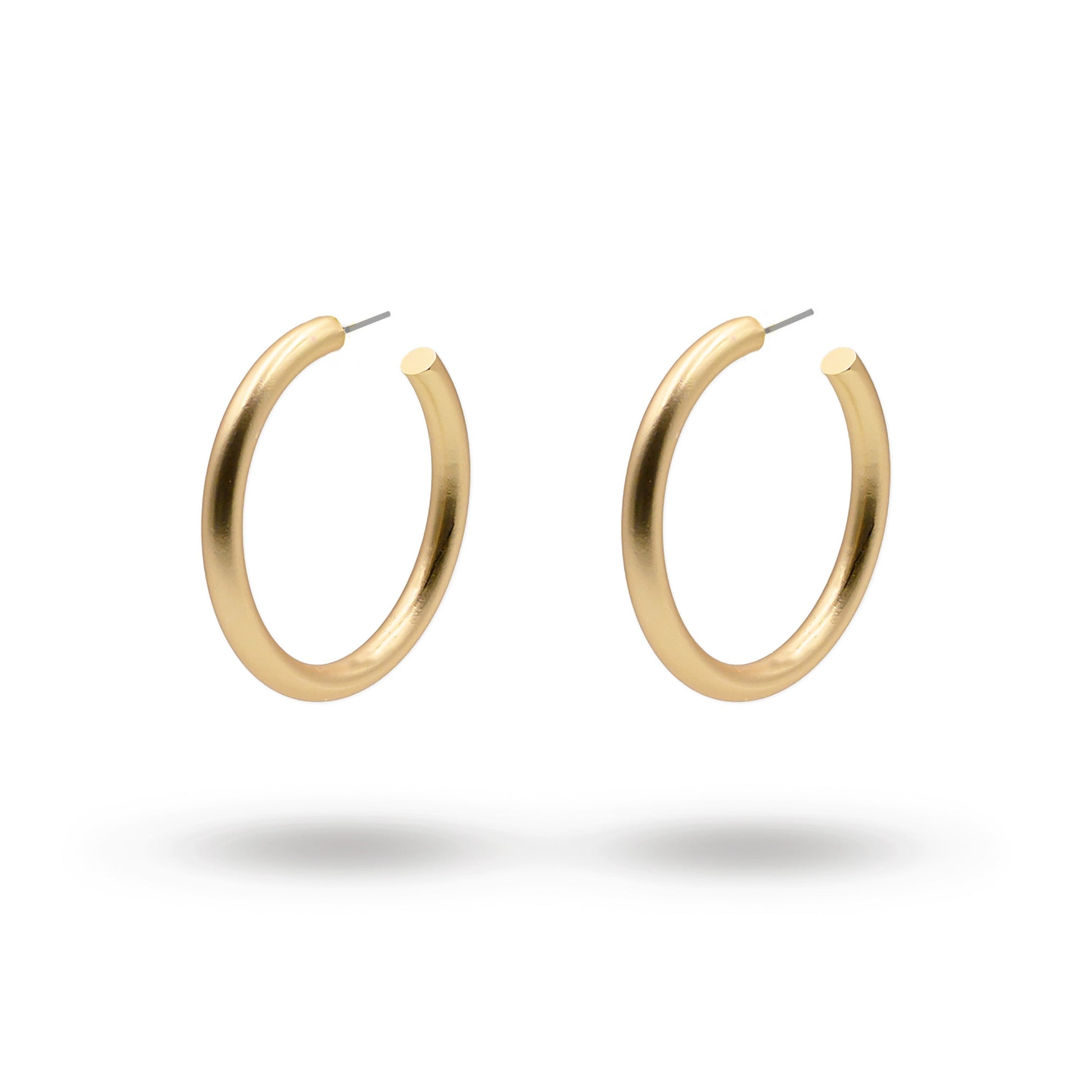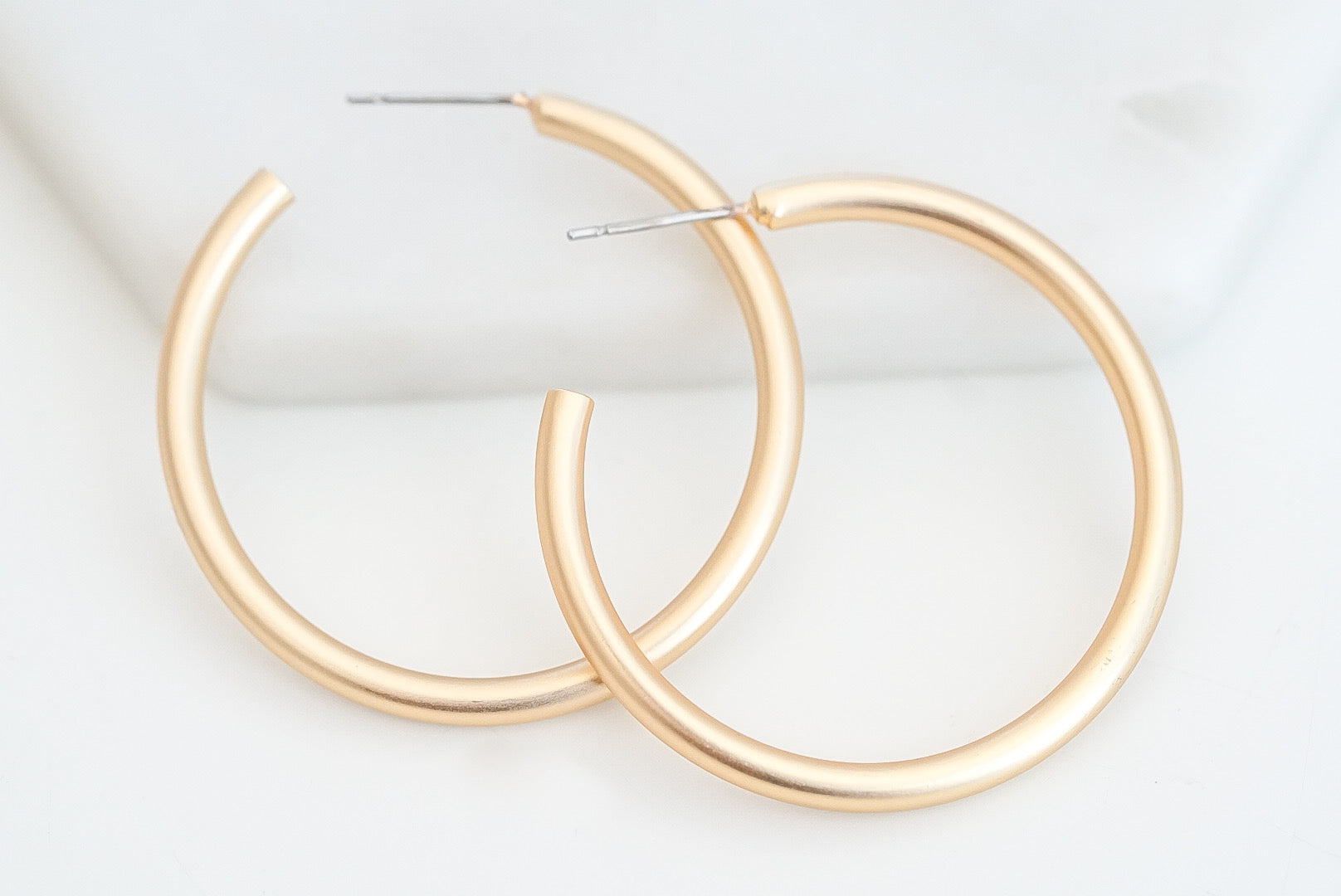 Gold Chunky Thick Hypoallergenic Nickel Free All Metal Hoop Earrings. Custom Geometric Shapes Accents And Designed With Love In Texas. Size 2 Inches Diameter With Custom Sizing Available On Select Pieces.