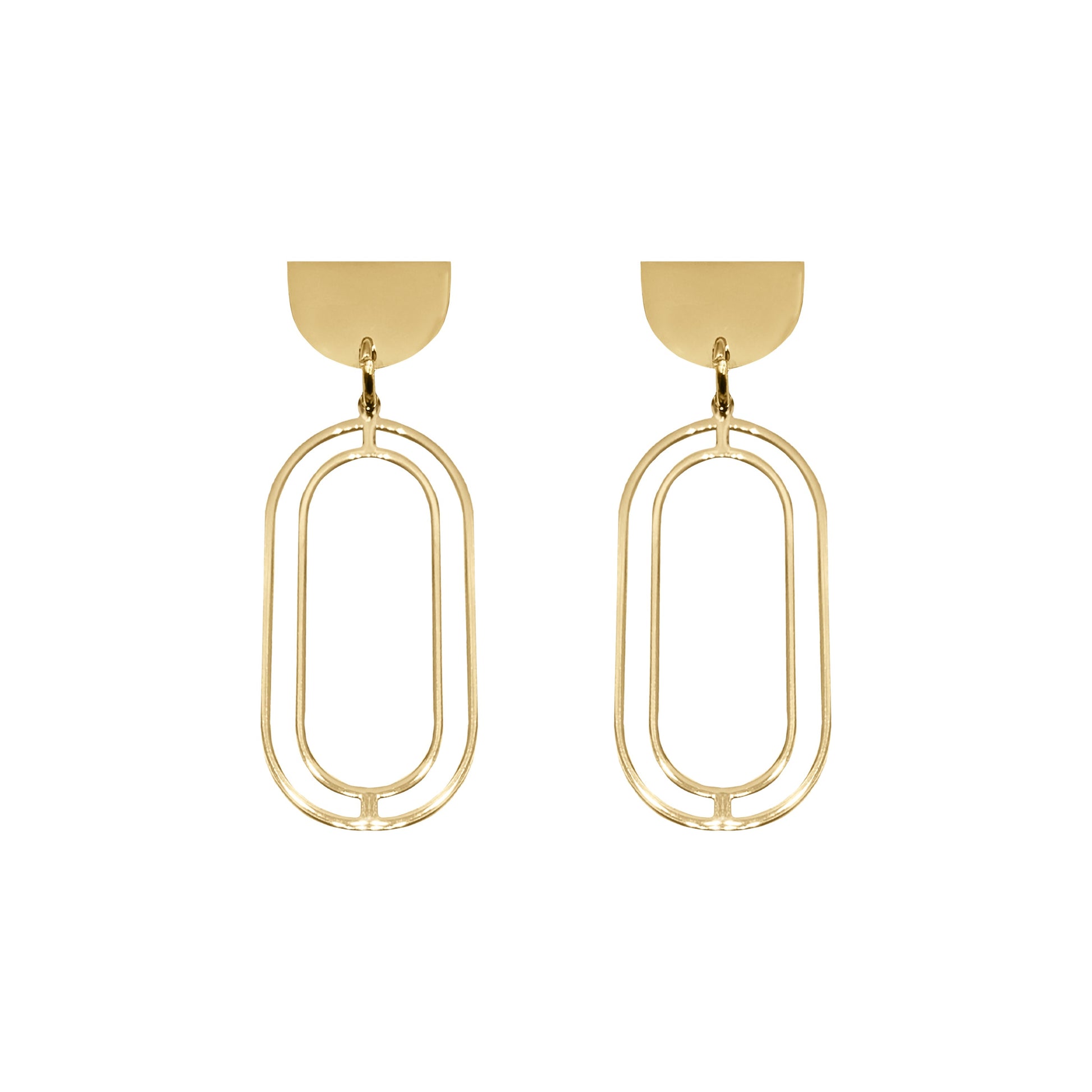 Gold Paperclip Stud Featherweight Hypoallergenic Nickel Free All Metal Drop Earrings. Custom Geometric Shapes Accents And Designed With Love In Texas. Size 2 Inches Length x 0.75 Inches Width With Custom Sizing Available On Select Pieces.