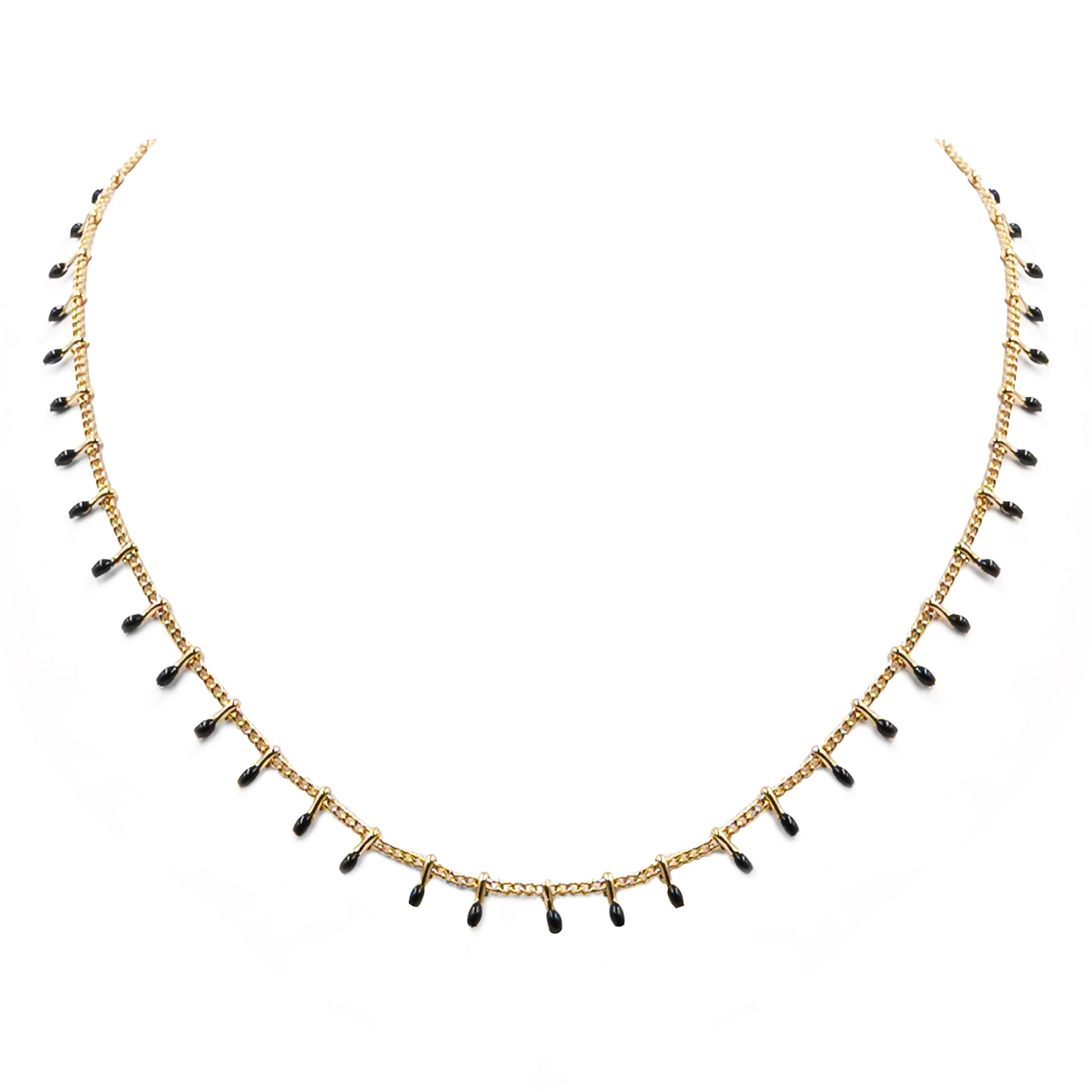 Gold And Black Spike Hypoallergenic Nickel Free Dainty Choker Necklace. Custom Decorative Accent Beads Accents And Designed With Love In Texas. Size 14 or 18 Inch Length, Plus 3 Inch Attached Necklace Extender With Custom Sizing Available On Select Pieces.