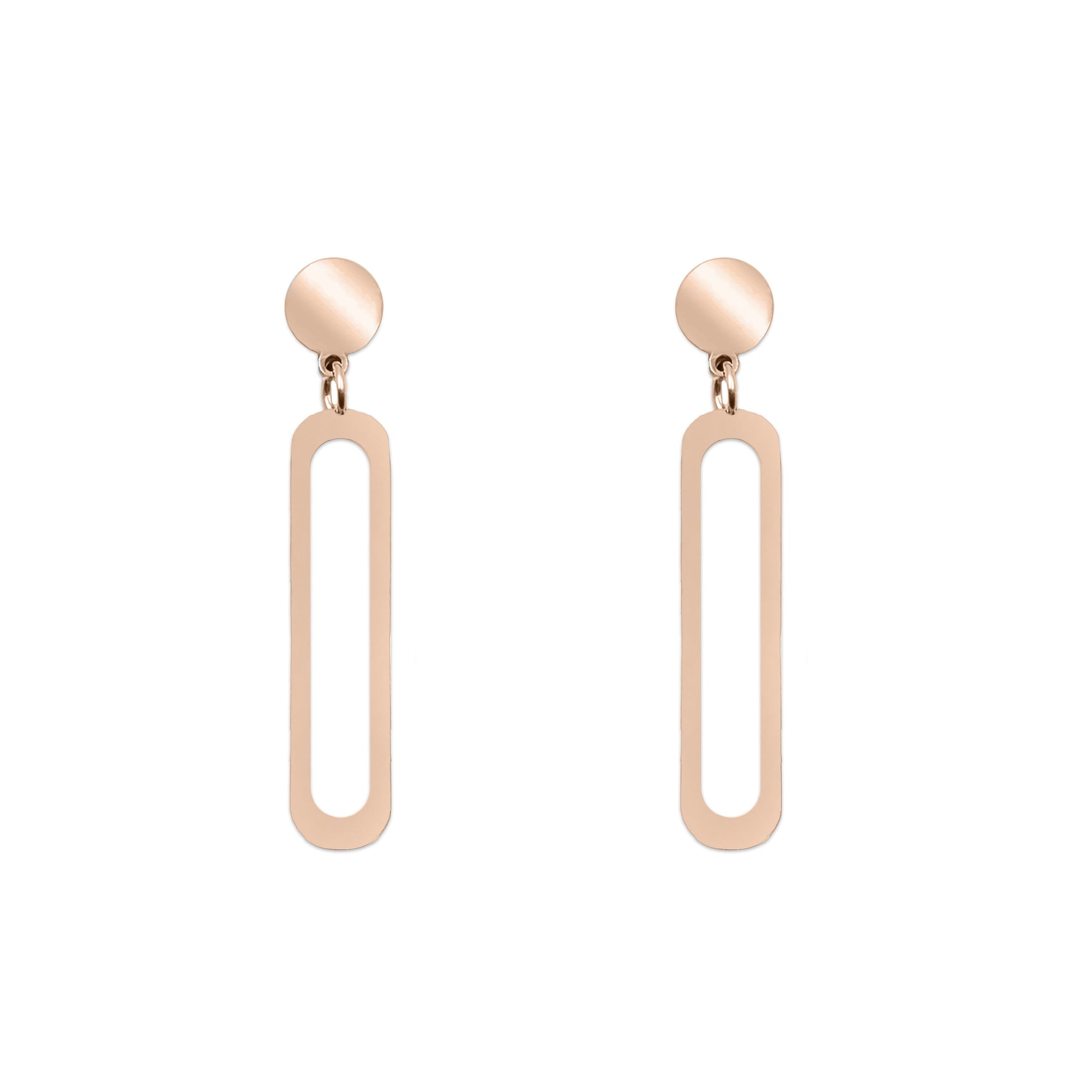 Rose Gold And Pink Paperclip Stud Mediumweight Hypoallergenic Nickel Free Statement Drop Earrings. Custom Geometric Shapes Accents And Designed With Love In Texas. Size 1.50 Inches Length x 0.25 Inch Width With Custom Sizing Available On Select Pieces.