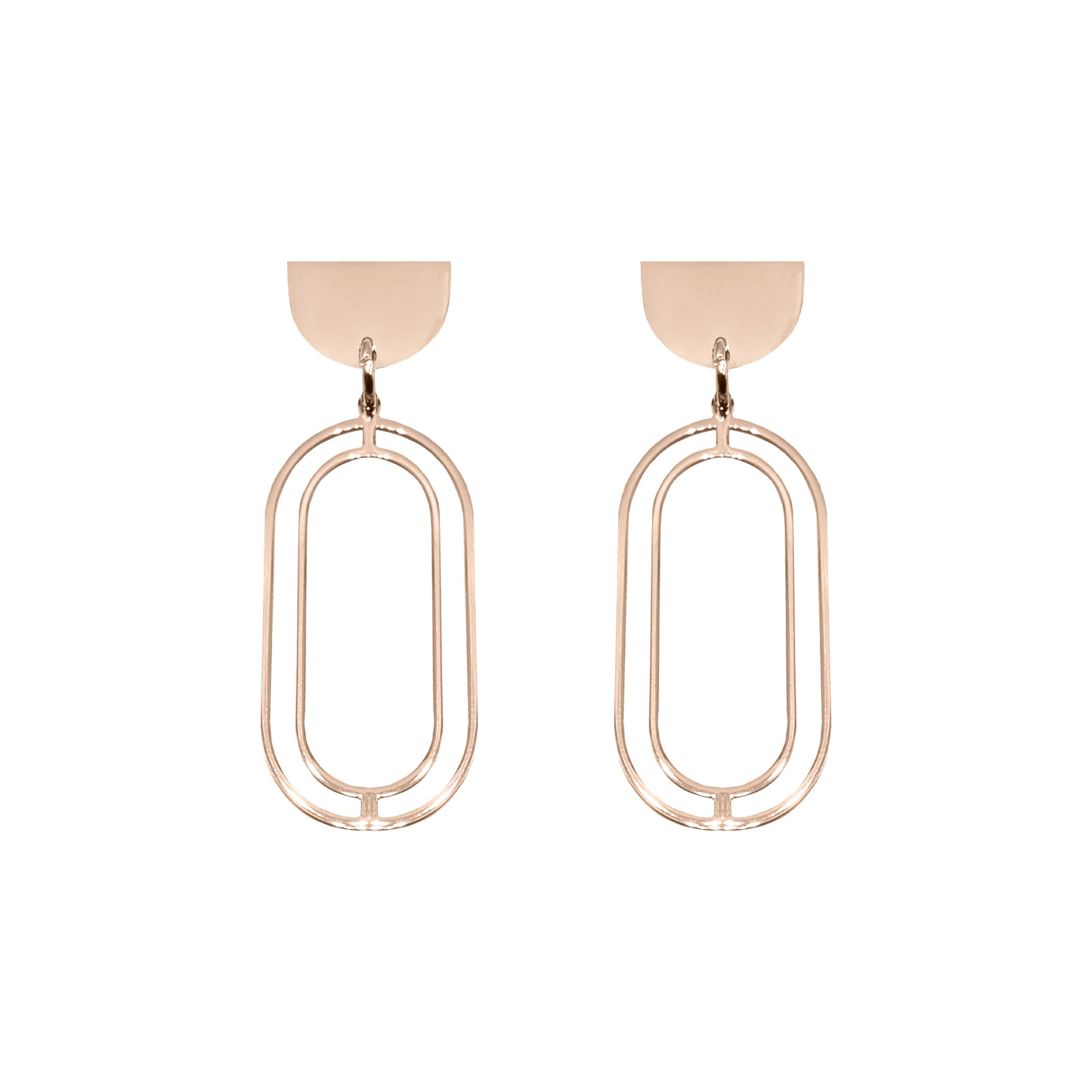 Rose Gold Paperclip Stud Featherweight Hypoallergenic Nickel Free All Metal Drop Earrings. Custom Geometric Shapes Accents And Designed With Love In Texas. Size 2 Inches Length x 0.75 Inches Width With Custom Sizing Available On Select Pieces.
