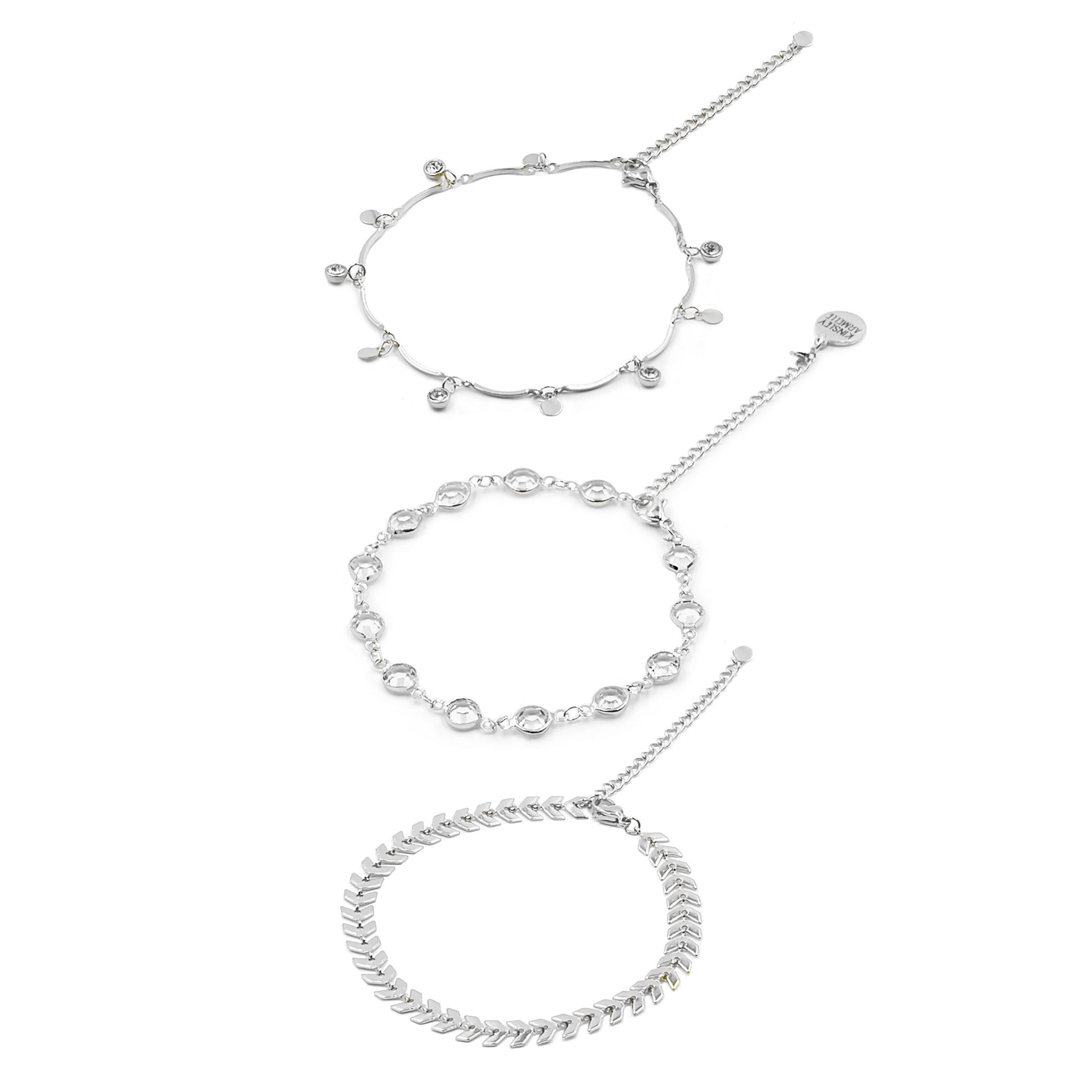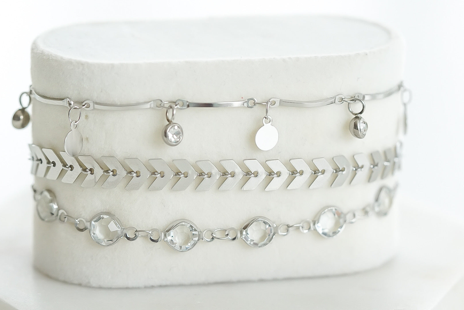 Silver Adjustable Charm Chevron Clear Dangle Disc Herringbone Rhinestone Station Hypoallergenic Nickel Free All Metal Anklet Stack Set. Custom Geometric Shapes Accents And Designed With Love In Texas. Size 7.75 - 9.75 Inch Circumference With Custom Sizing Available On Select Pieces.