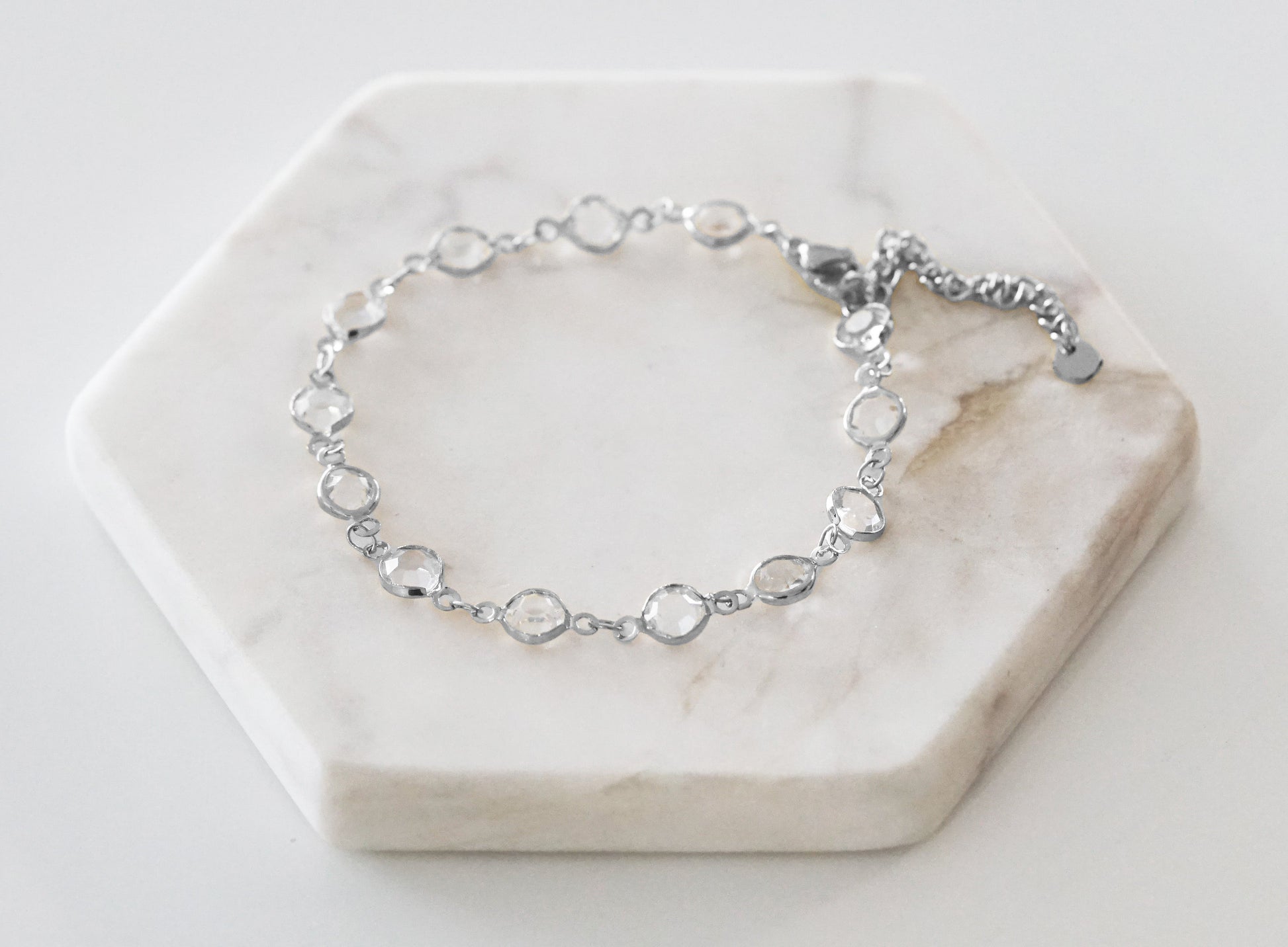 Silver Adjustable Clear Disc Station Hypoallergenic Nickel Free All Metal Adjustable Anklet. Custom Glass Decorative Accent Beads Accents And Designed With Love In Texas. Size 7.75 - 9.75 Inch Circumference With Custom Sizing Available On Select Pieces.