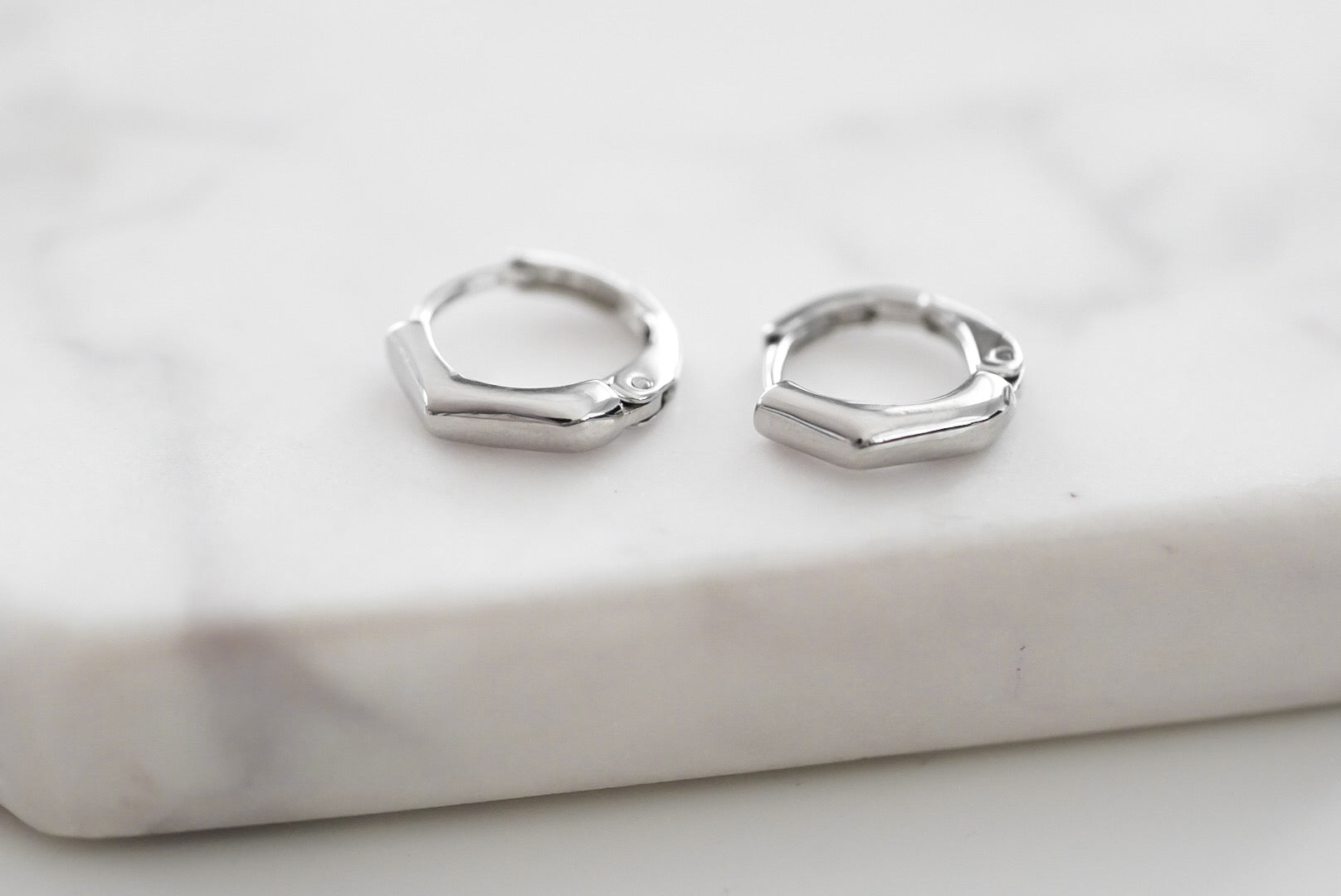 Silver And Gray Huggie Featherweight Hypoallergenic Nickel Free Dainty Hoop Earrings. Custom Geometric Shapes Accents And Designed With Love In Texas. Size 1cm Length x 1cm Width With Custom Sizing Available On Select Pieces.