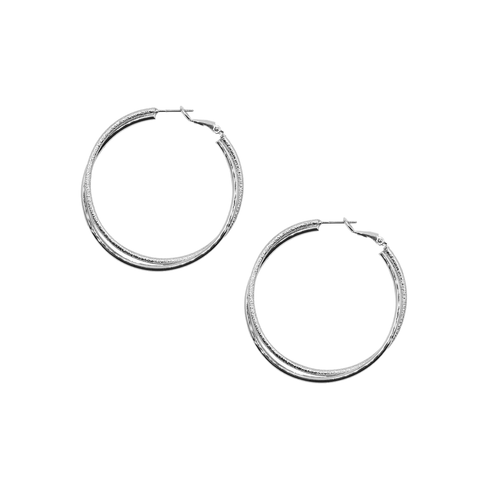 Silver And Gray Double Textured Mediumweight Statement Hoop Earrings. Custom Geometric Shapes Accents And Designed With Love In Texas. Size 1.75 Inch Diameter With Custom Sizing Available On Select Pieces.