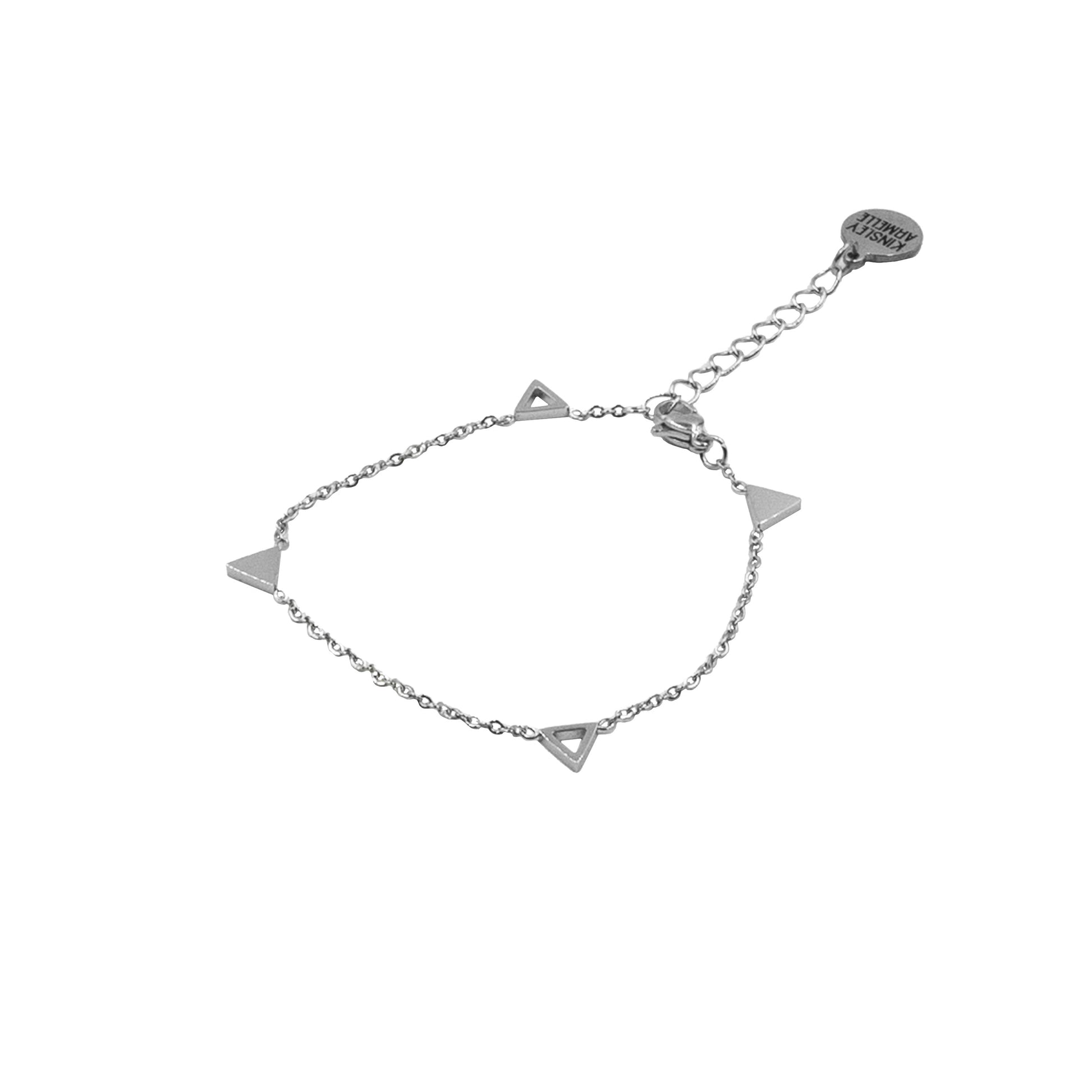 Silver And Gray Clasp Triangular Hypoallergenic Nickel Free Dainty Adjustable Bracelet. Custom Geometric Shapes Accents And Designed With Love In Texas. Size 6.25 - 8.0 Inch Circumference With Custom Sizing Available On Select Pieces.