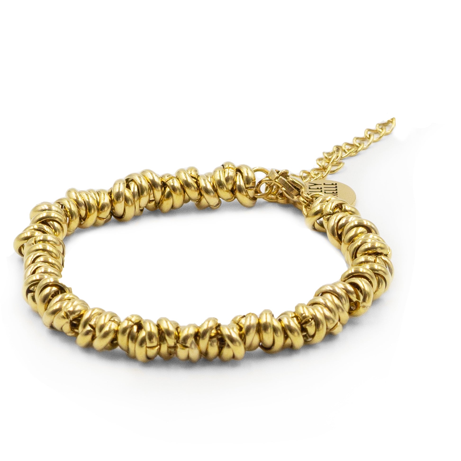 Gold Adjustable Clasp Chain Clustered Chunky Hypoallergenic Nickel Free All Metal Adjustable Bracelet. Custom Geometric Shapes Accents And Designed With Love In Texas. Size 6.0 - 7.75 Inch Circumference With Custom Sizing Available On Select Pieces.