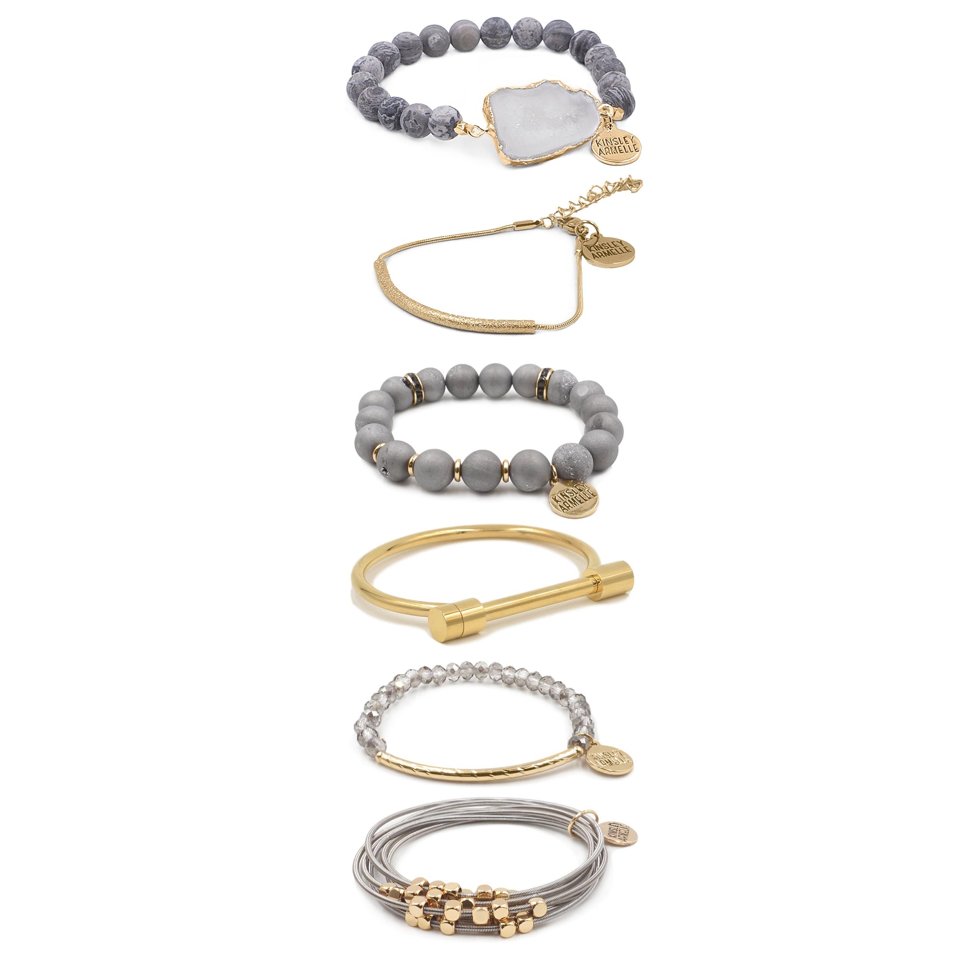 Gold And Gray Adjustable Geode Pocks Screw Hypoallergenic Nickel Free Bracelet Stack Set. Custom Agate Slices Raw Natural Stone Accents And Designed With Love In Texas. Size Small, Medium, Large, and Extra Large Ranging From 6.25 - 7.25 Inch Circumference With Custom Sizing Available On Select Pieces.