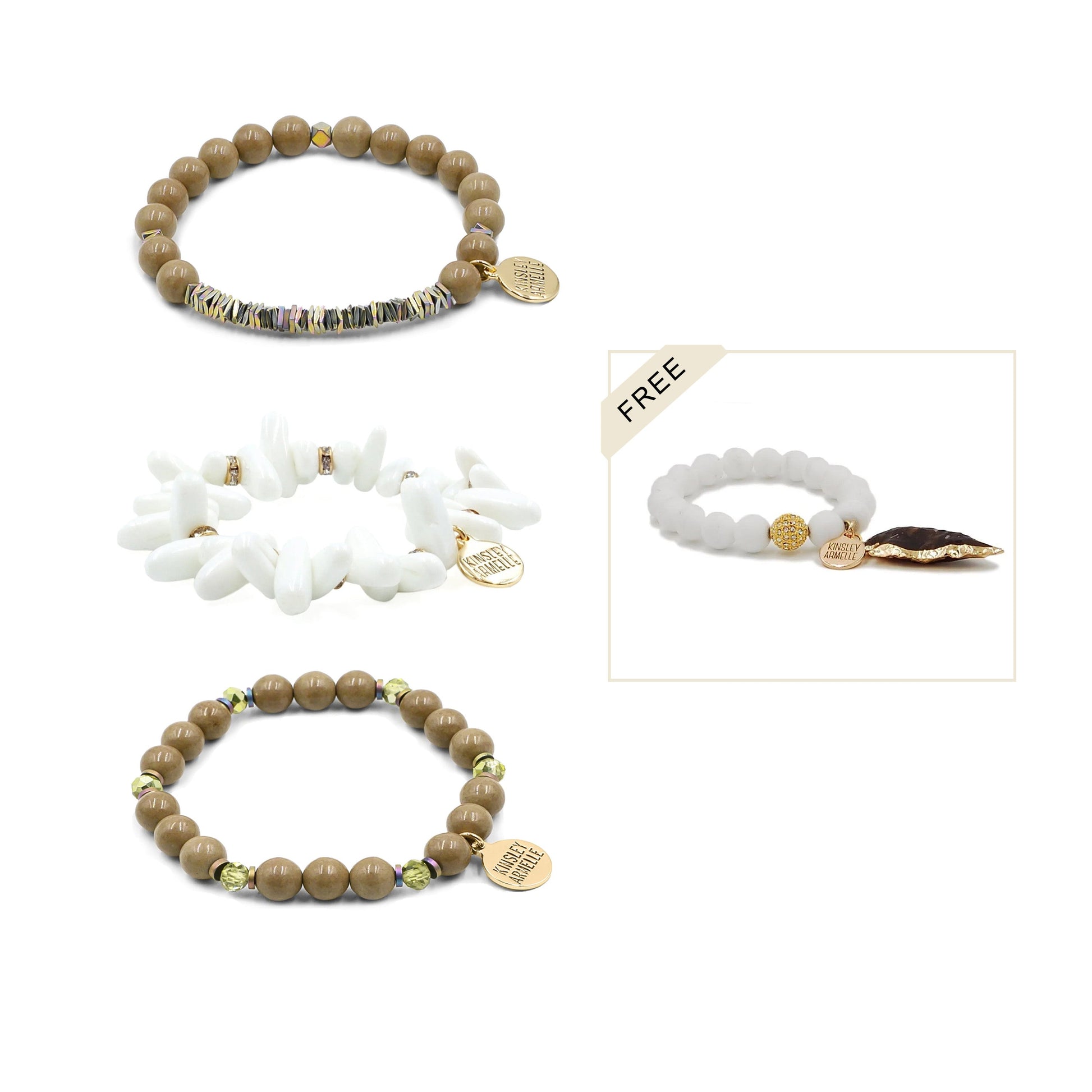 Gold And Brown Arrowhead Beads Iridescent Raw Hypoallergenic Nickel Free Bracelet Stack Set. Custom Jasper Raw Natural Stone Accents And Designed With Love In Texas. Size Small, Medium, Large, and Extra Large Ranging From 6.25 - 7.25 Inch Circumference With Custom Sizing Available On Select Pieces.