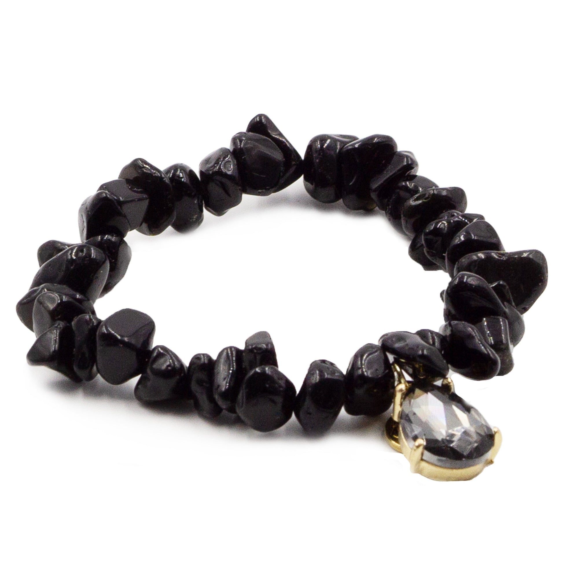 Gold And Black Chip Chunky Diamond Shimmering Sparkling Hypoallergenic Nickel Free Beaded Stretch Bracelet. Custom Glass Charm Accents And Designed With Love In Texas. Size Small, Medium, Large, and Extra Large Ranging From 6.25 - 7.25 Inch Circumference With Custom Sizing Available On Select Pieces.