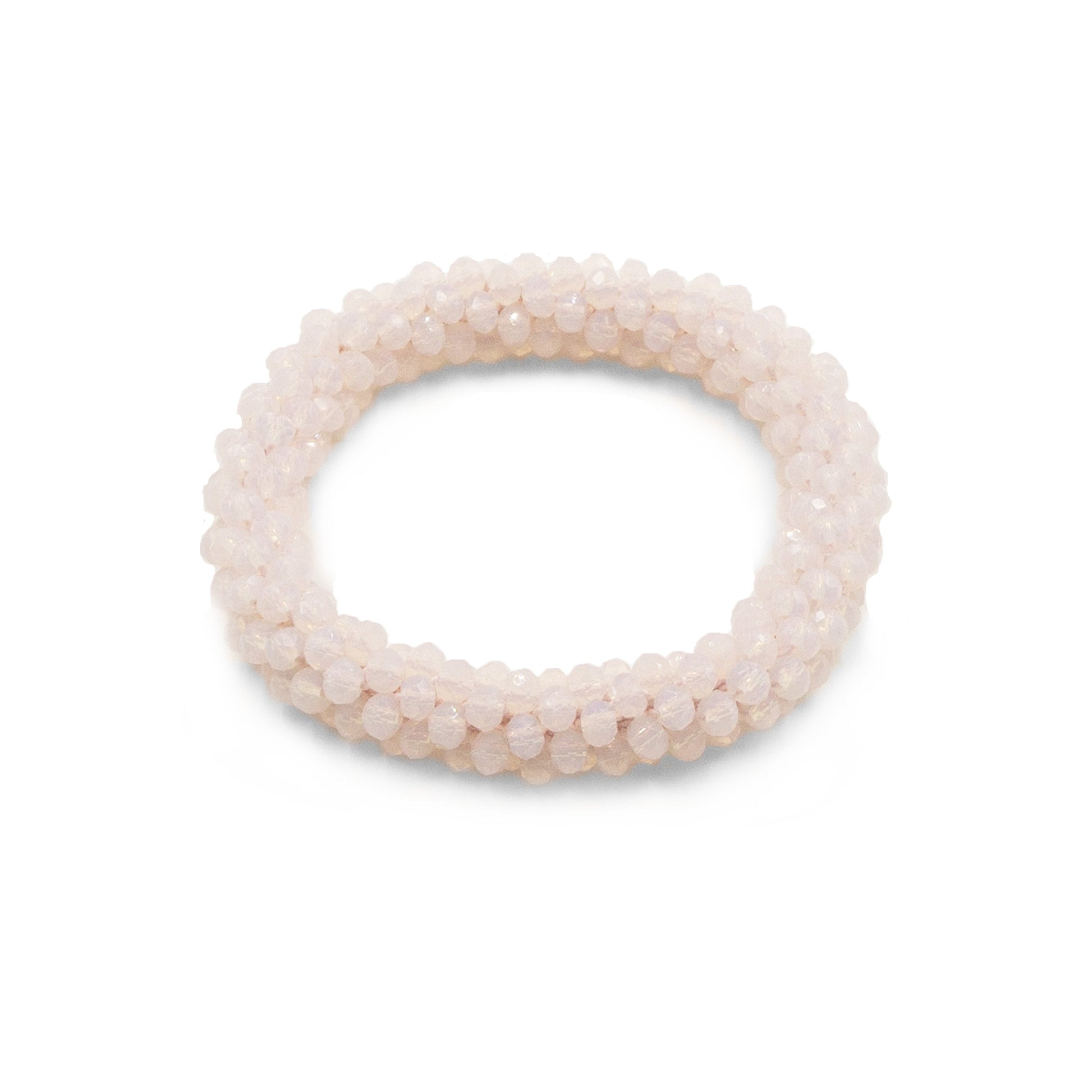White And Pink Faceted Hypoallergenic Nickel Free Beaded Stretch Bracelet. Custom Glass Glass Beads Accents And Designed With Love In Texas. Size Small, Medium, Large, and Extra Large Ranging From 6.25 - 7.25 Inch Circumference With Custom Sizing Available On Select Pieces.
