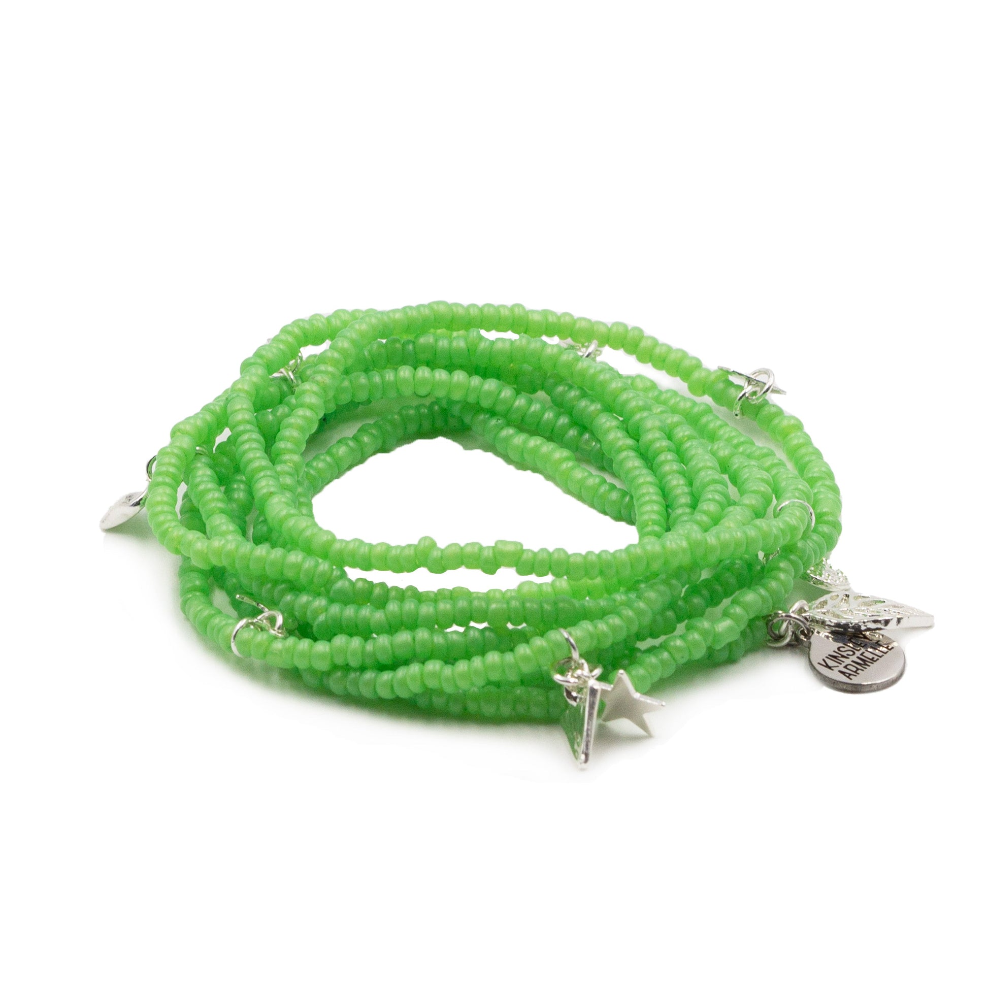 Silver And Green Boho Hypoallergenic Nickel Free Wrap Bracelet. Custom Silver Plated Brass Charm Accents And Designed With Love In Texas. Size 5 - 8.5 Inches Circumference With Custom Sizing Available On Select Pieces.