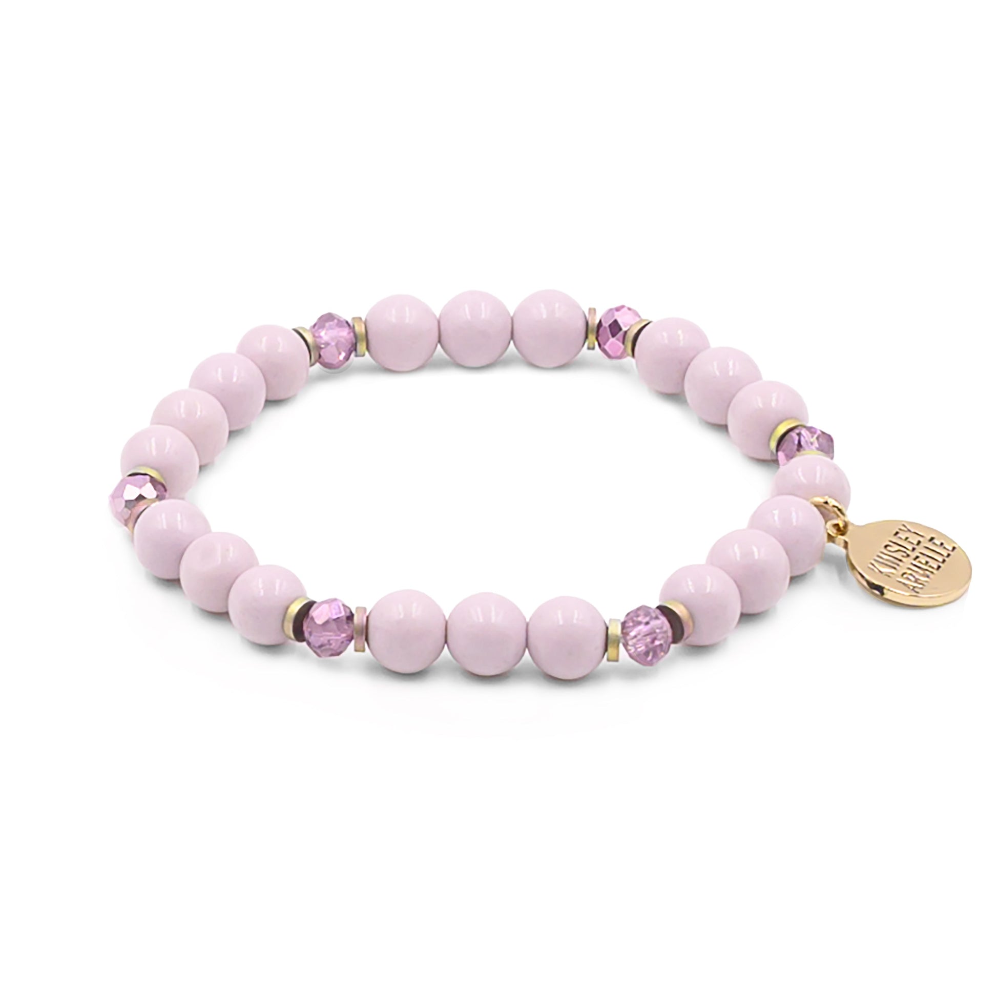 Gold And Purple Glossy Station Hypoallergenic Nickel Free Beaded Stretch Bracelet. Custom Decorative Accent Beads Accents And Designed With Love In Texas. Size Small, Medium, Large, and Extra Large Ranging From 6.25 - 7.25 Inch Circumference With Custom Sizing Available On Select Pieces.