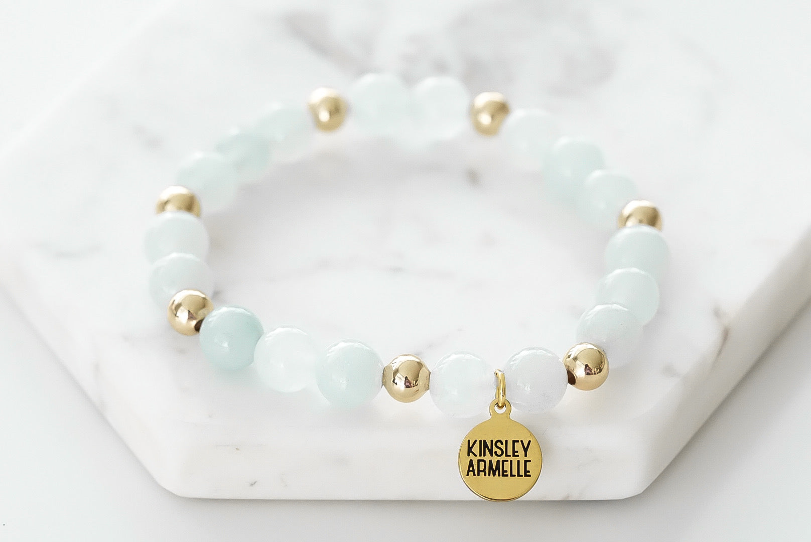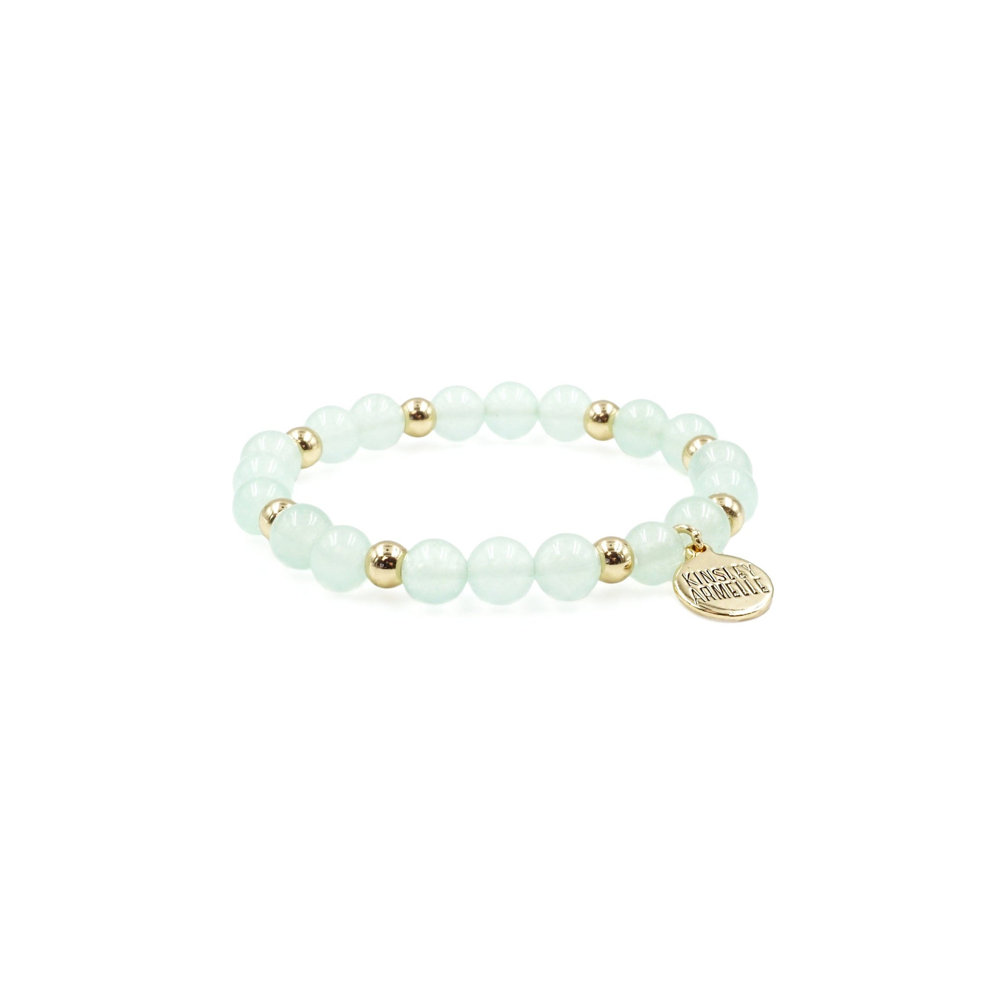 Gold And Green Glossy Iridescent Station Hypoallergenic Nickel Free Beaded Stretch Bracelet. Custom Decorative Accent Beads Accents And Designed With Love In Texas. Size Small, Medium, Large, and Extra Large Ranging From 6.25 - 7.25 Inch Circumference With Custom Sizing Available On Select Pieces.