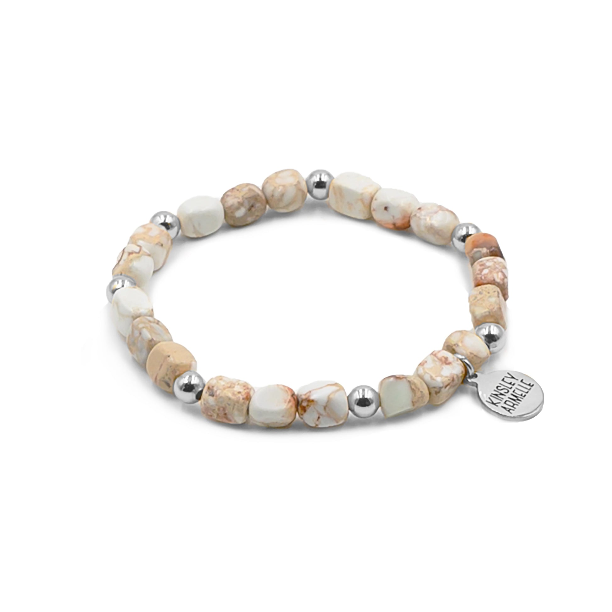Silver And Brown Geometric Station Hypoallergenic Nickel Free Beaded Stretch Bracelet. Custom Decorative Accent Beads Accents And Designed With Love In Texas. Size Small, Medium, Large, and Extra Large Ranging From 6.25 - 7.25 Inch Circumference With Custom Sizing Available On Select Pieces.