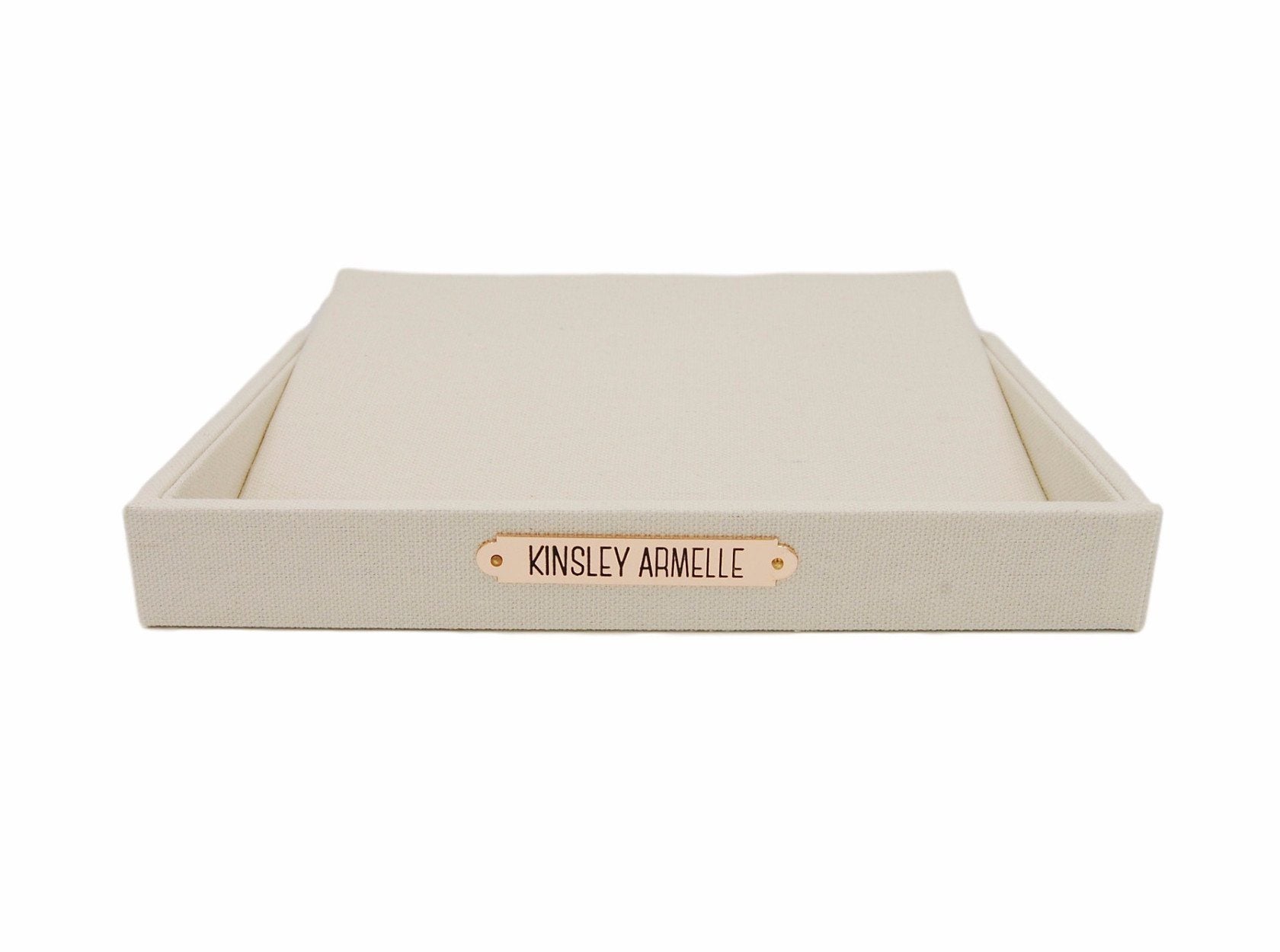 Gold And White Hypoallergenic Nickel Free Jewelry Stand Accessory. Custom 18K Yellow Gold Ion Plated Stainless Steel Kinsley Armelle Engraved Plate Accents And Designed With Love In Texas. Size Variations With Custom Sizing Available On Select Pieces.
