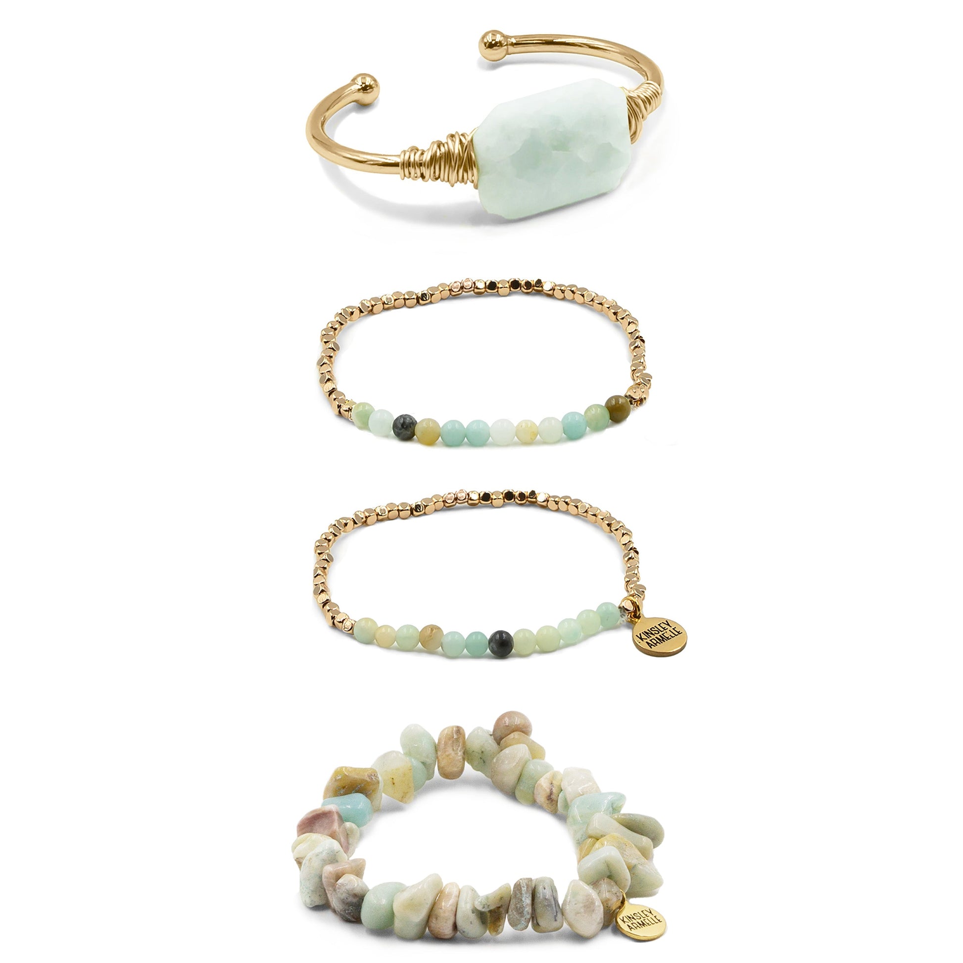 Gold And Light Blue Chip Green Multicolored Natural Stone Natural Stone Crystal Gemstone Tropical Hypoallergenic Nickel Free Jewelry Sets Jewelry Set. Custom Chalcedony Raw Natural Stone Accents And Designed With Love In Texas. Size 6.25 - 7.25 Inches Circumference With Custom Sizing Available On Select Pieces.