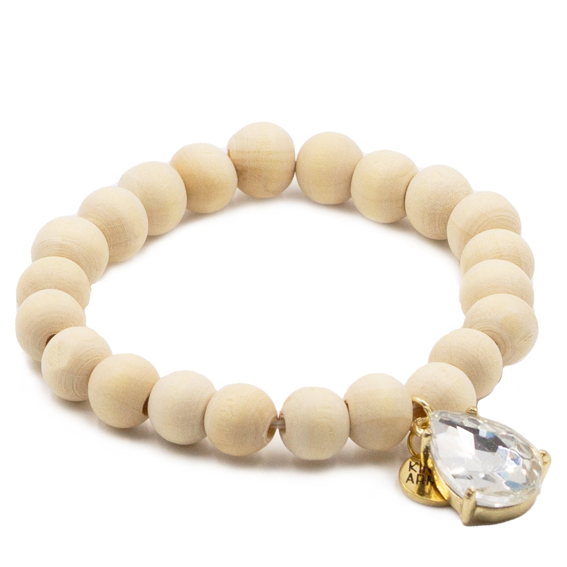 Gold And Brown Diamond Tear Drop Wooden Hypoallergenic Nickel Free Beaded Stretch Bracelet. Custom Glass Charm Accents And Designed With Love In Texas. Size Small, Medium, Large, and Extra Large Ranging From 6.25 - 7.25 Inch Circumference With Custom Sizing Available On Select Pieces.