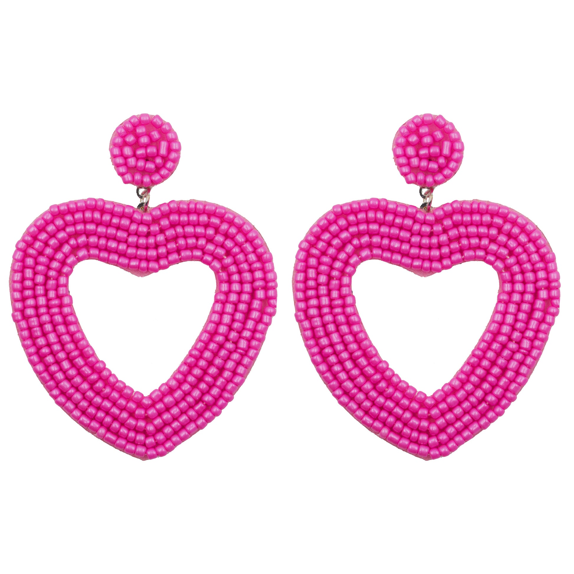 White And Pink Big Boho Bold Geometric Heart Stud Statement Drop Earrings. Custom Lucite Acrylic Decorative Accent Beads Accents And Designed With Love In Texas. Size 2.5 Inches Length x 2.0 Inches Width With Custom Sizing Available On Select Pieces.