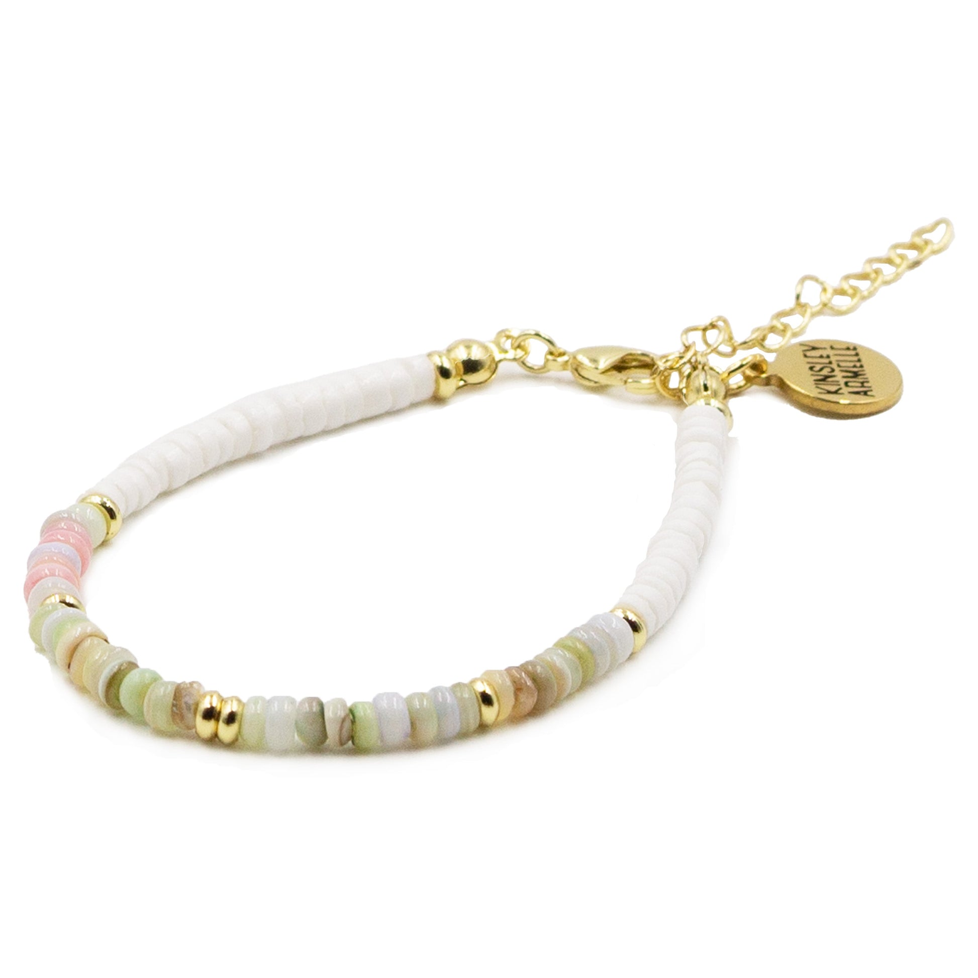 Gold And Green Adjustable Clasp Boho Colorful Hypoallergenic Nickel Free Dainty Adjustable Bracelet. Custom Seed Bead Decorative Accent Beads Accents And Designed With Love In Texas. Size 6.5 - 8.0 Inches Circumference With Custom Sizing Available On Select Pieces.