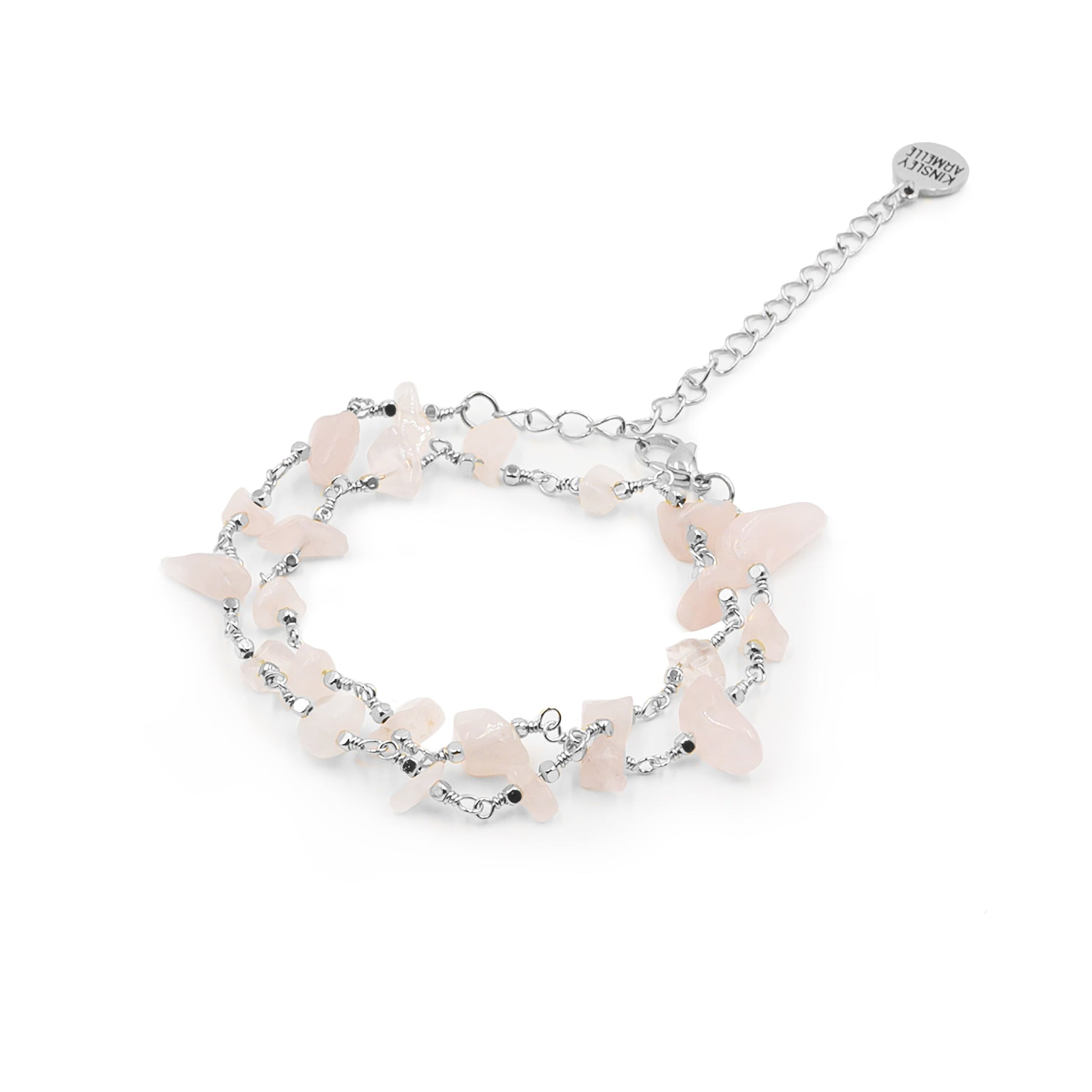 Silver And Pink Natural Stone Nugget Station Hypoallergenic Nickel Free Wrap Bracelet. Custom Druzy Raw Natural Quartz Stone Accents And Designed With Love In Texas. Size 6.0 - 7.5 Inch Circumference With Custom Sizing Available On Select Pieces.