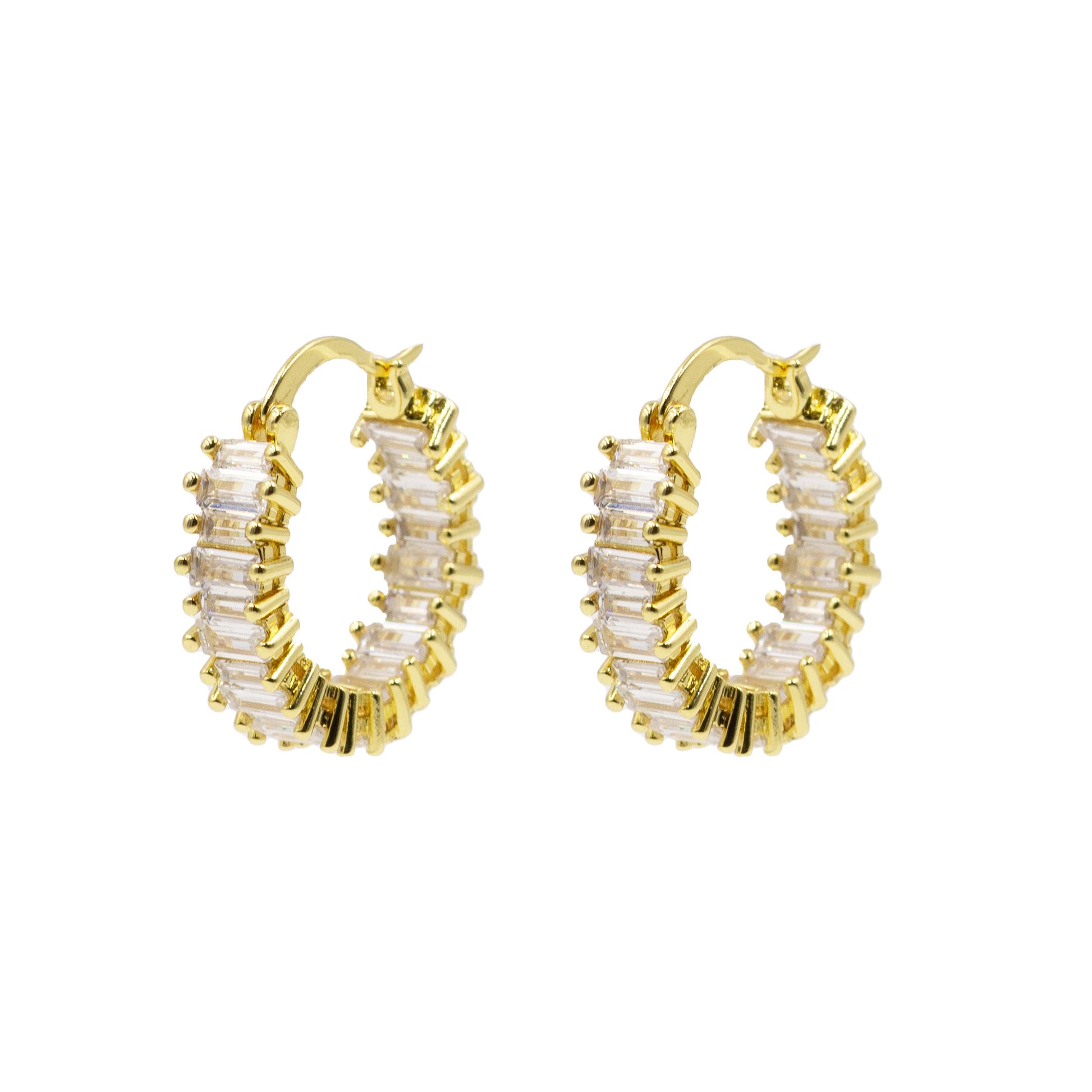 Gold And White Diamond Shimmering Sparkling Statement Hoop Earrings. Custom Zircon Gemstones Raw Natural Stone Accents And Designed With Love In Texas. Size 1.0 Inch Diameter With Custom Sizing Available On Select Pieces.
