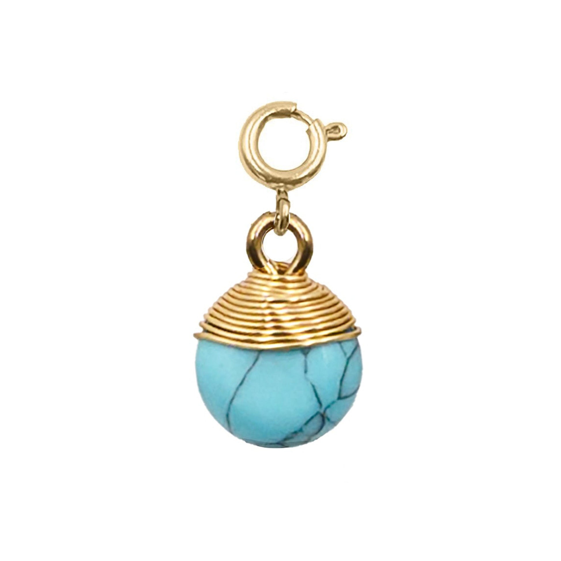 Gold And Light Blue Marble Natural Stone Crystal Gemstone Turquoise Wire Wrapped Hypoallergenic Nickel Free Charm Accessory. Custom Raw Natural Stone Accents And Designed With Love In Texas. Size 0.75 Inch Length x 0.25 Inch Width With Custom Sizing Available On Select Pieces.