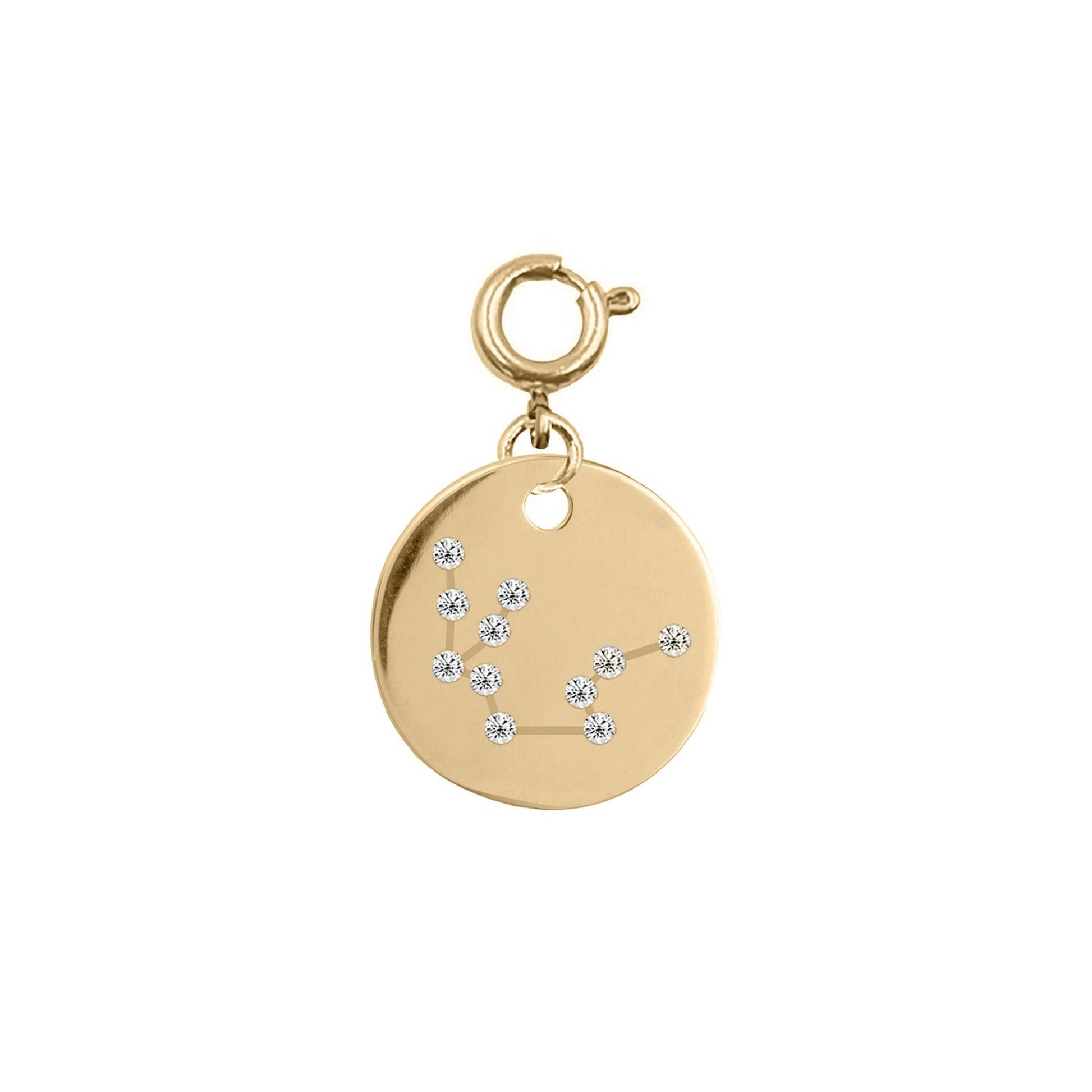 Gold And White Coin Constellation Astrology Disc February Galaxy January Zodiac Hypoallergenic Nickel Free Charm Accessory. Custom Zircon Gemstones Accents And Designed With Love In Texas. Size 0.50 Inch Diameter With Custom Sizing Available On Select Pieces.